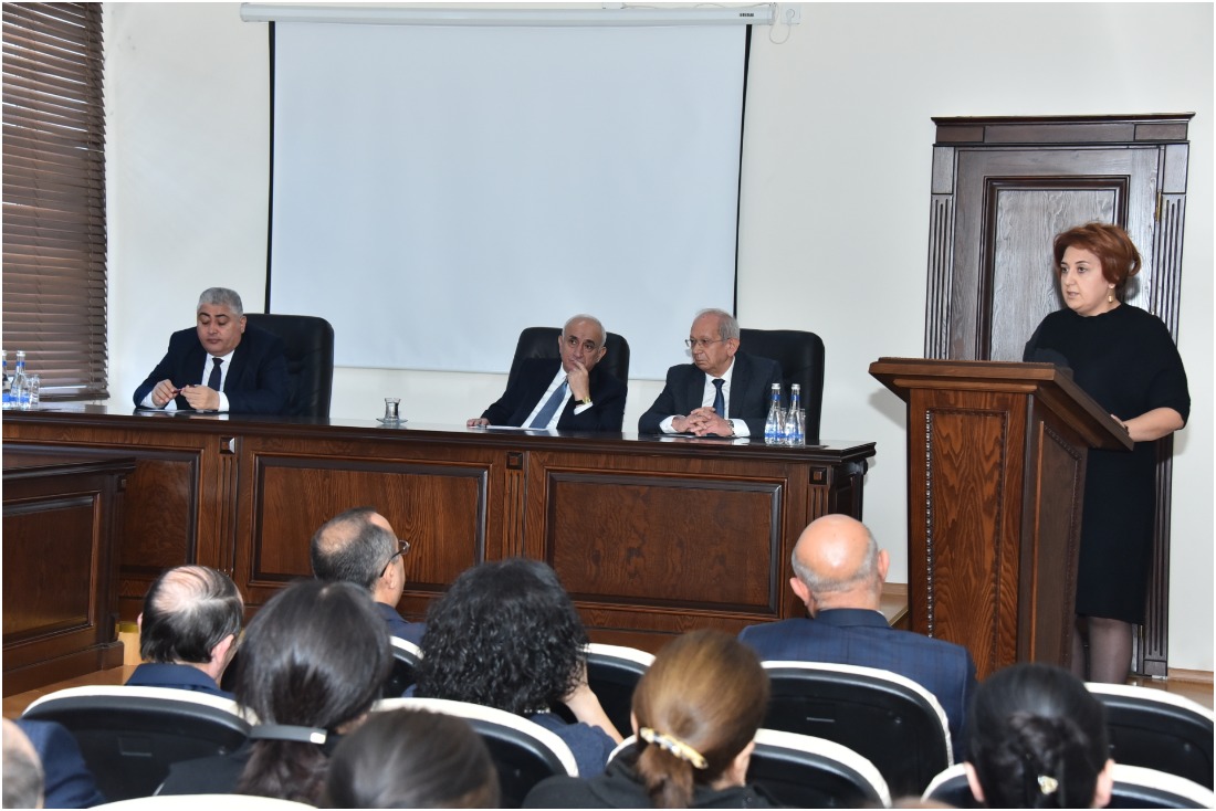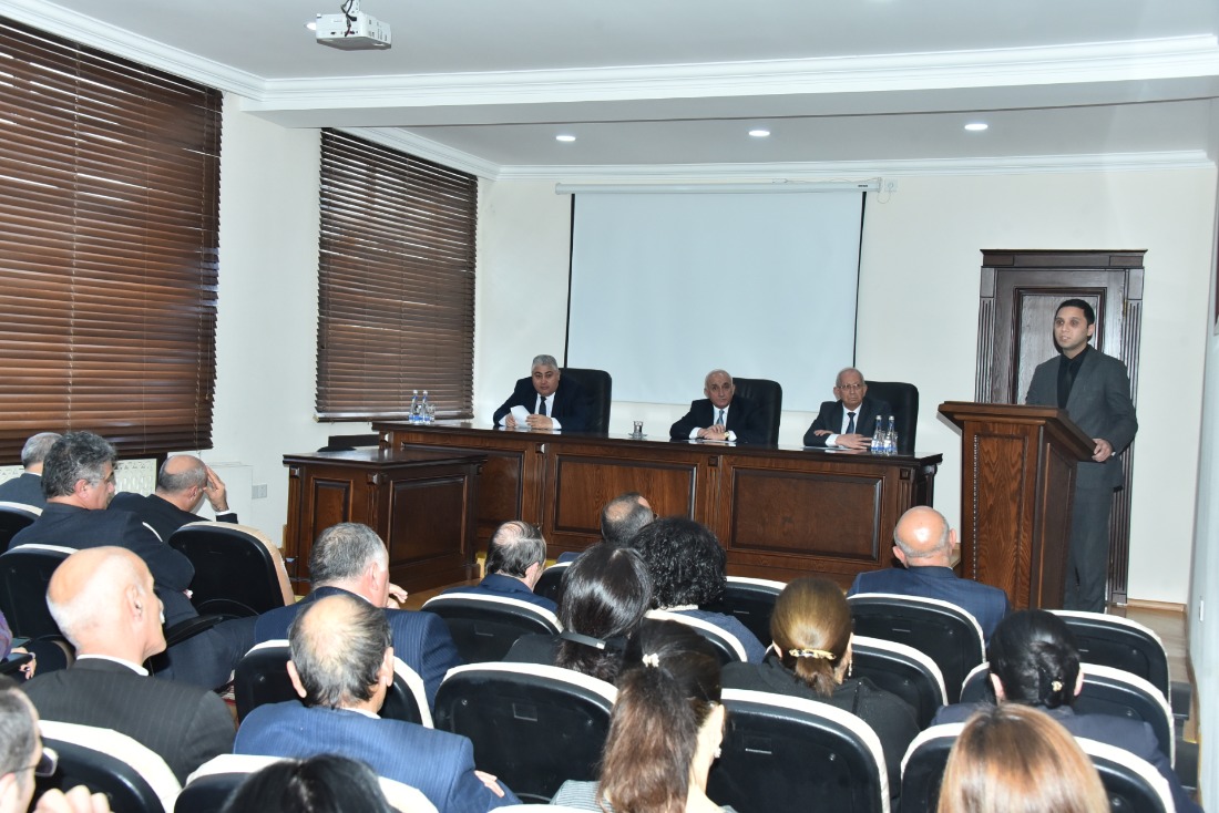 Tarix və coğrafiya fakültəsinin dekanı Əməkdar müəllim, professor Adil Baxşəliyev “Heydər Əliyevin həyatı və dövlətçilik fəaliyyəti”, Maliyyə və mühasibat uçotu kafedrasının baş müəllimi Şəlalə Məmmədova “Heydər Əliyev və Azərbaycan iqtisadiyyatı”, Fəlsəfə, sosiologiya və politologiya kafedrasının baş müəllimi, fəl.f.d Osman Hacıyev “Heydər Əliyevin təhsil siyasəti”, Mühəndislik fakültəsinin III kurs tələbəsi Ülkər Abıyeva “Heydər Əliyevin azərbaycançılıq ideologiyası”, Azərbaycan və Şərqi Avropa xalqları tarixi kafedrasının baş müəllimi Samir Məhərrəmov “Azərbaycan Dövlətçiliyi ənənəsində varislik - İlham Əliyev” mövzularında məruzələrlə çıxış etdilər. Bildirdilər ki, Ulu öndər Heydər Əliyevin milli maraqlara əsaslanmaqla həyata keçirdiyi çoxşaxəli siyasət strategiyası bu gün onun layiqli varisi Prezident cənab İlham Əliyev tərəfindən inamla davam etdirilir. Bu siyasi xətt Azərbaycan dövlətçiliyinin inkişafına, ölkənin milli maraqlarının müdafiəsinə və iqtisadiyyatın inkişaf etdirilməsinə misilsiz töhfələr verir.