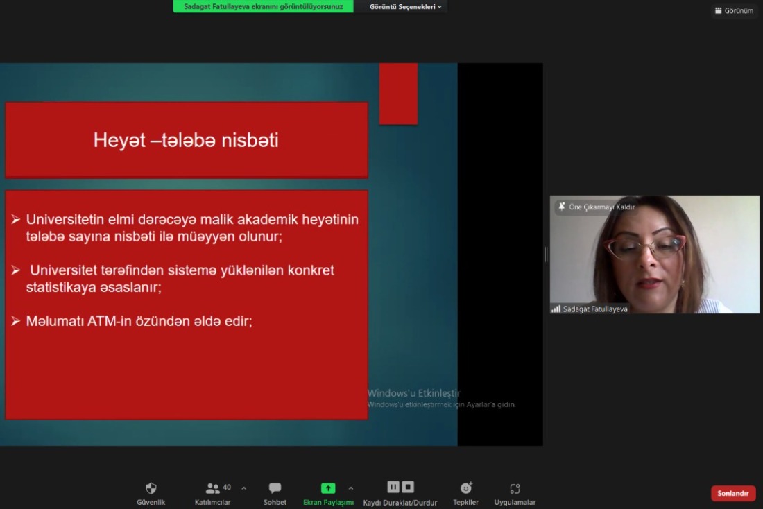 Sədaqət Fətullayeva təqdimatla çıxış edərək beynəlxalq reytinq sistemlərinin göstəriciləri barədə məlumat verdi və konkret əməli addımlara başlanılmasının bir hədəf kimi qarşıya qoyulduğunu diqqətə çatdırdı.