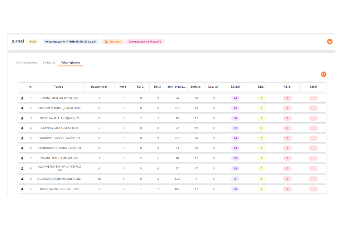· Kollokvium cədvəli