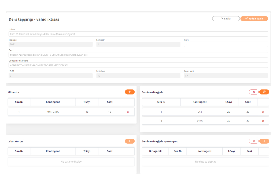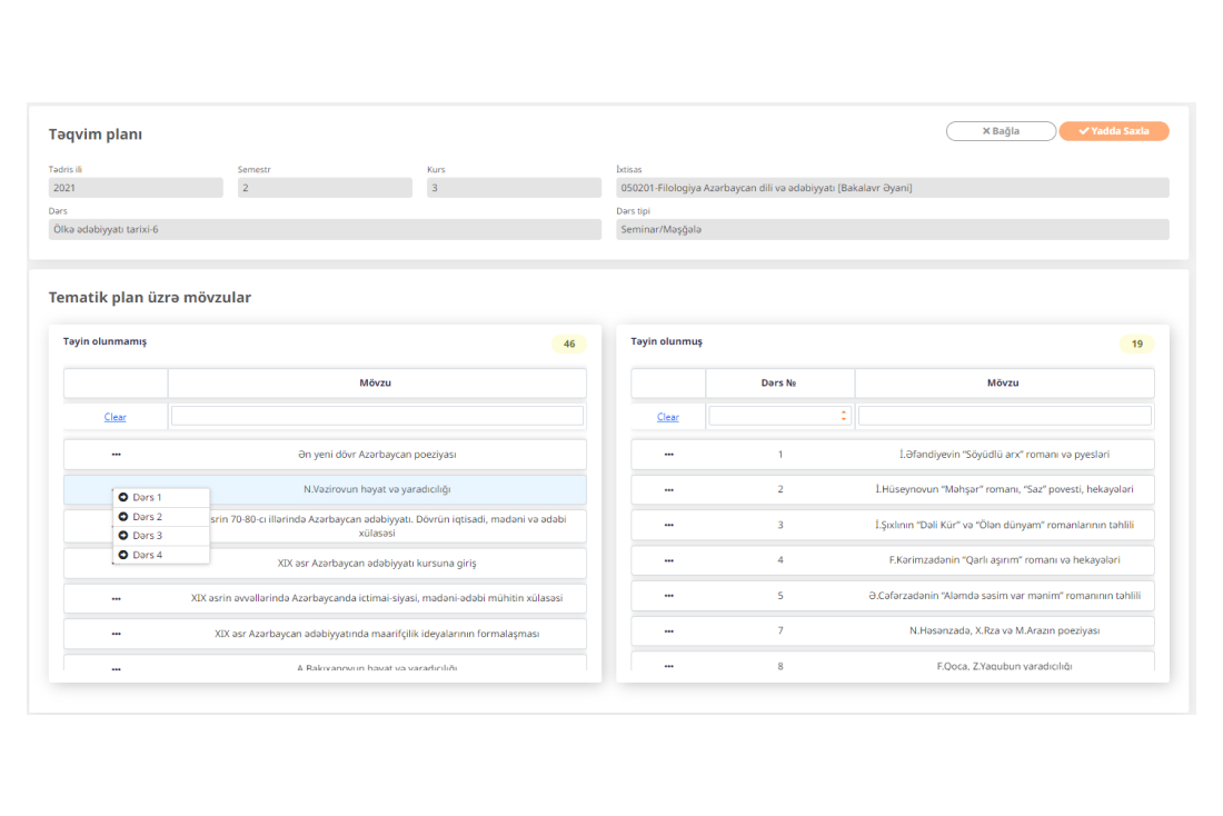 · Dərs bölgüsü