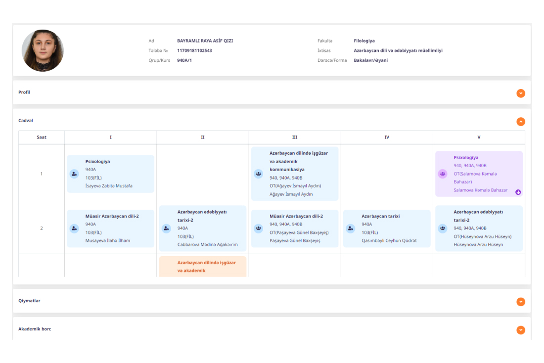 · Tələbə portalı