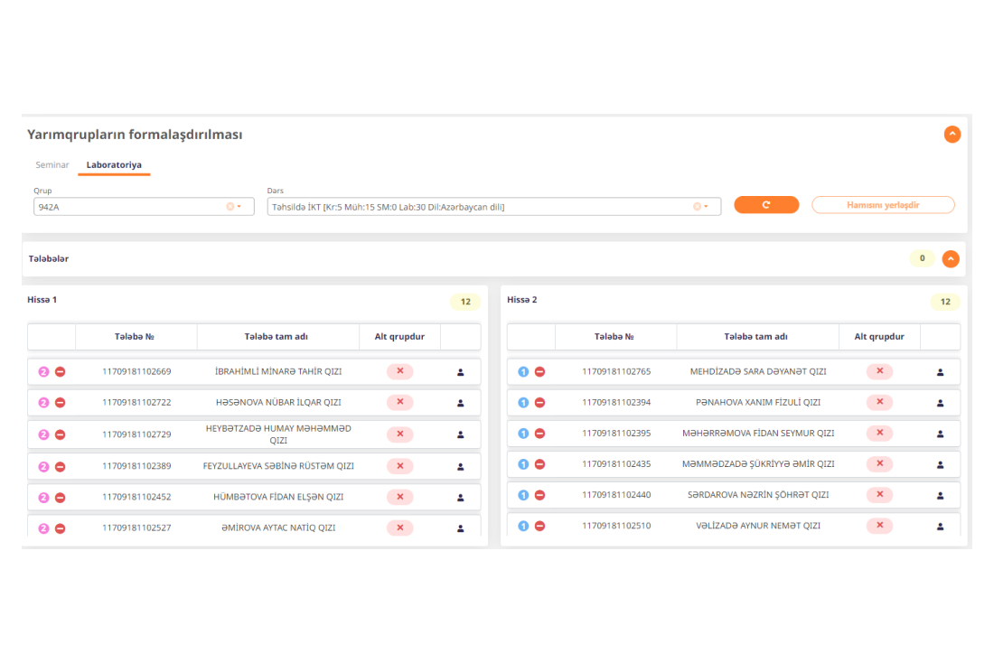 · Tələbə köçürmələri