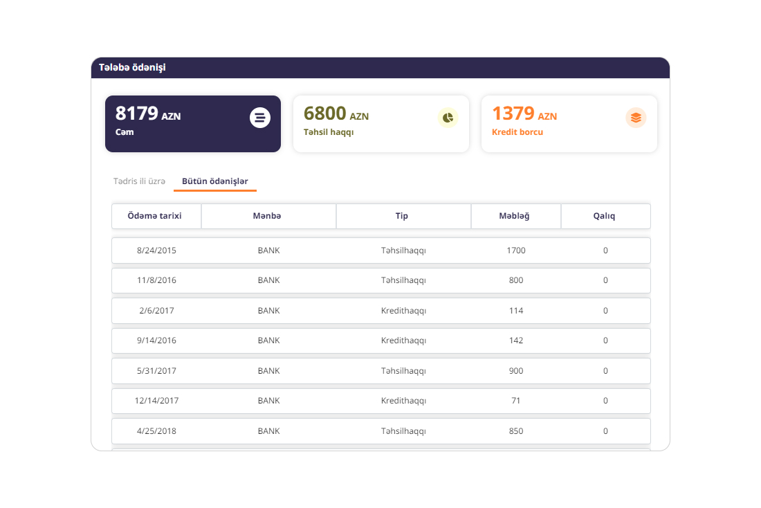 · Tələbə ödənişlərinin izlənilməsi
