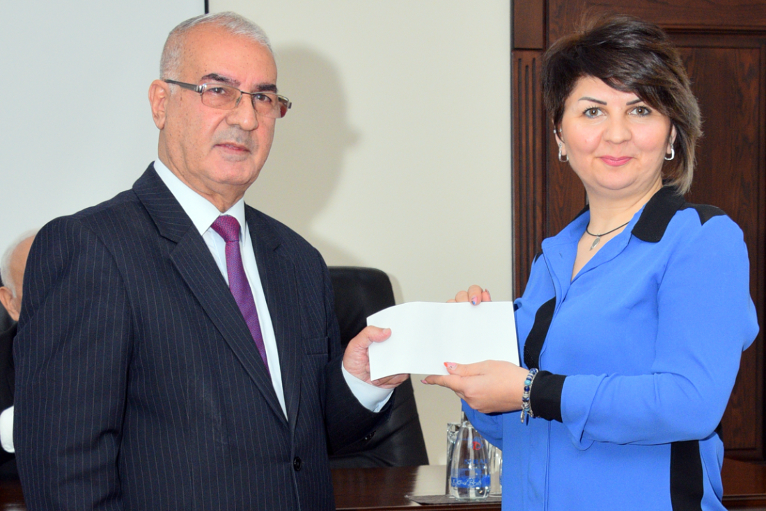 ATİAHİ Respublika Komitəsinin sədr müaviniMirzə Cəfərzadə çıxış edərək təltif olunan əməkdaşları təbrik etdi, ölkə Prezidenti cənab İlham Əliyev tərəfindən təhsilin inkişafına diqqətlə yanaşıldığını qeyd etdi. Natiq əldə edilmiş nailiyyətlərin məhz bu diqqət və qayğının nəticəsi olduğunu tədbir iştirakçılarının nəzərinə çatdırdı. Bildirdi ki, zəngin ənənələri, şərəfli tarixi olan Sumqayıt Dövlət Universiteti indiyədək ölkəmiz üçün minlərlə yüksəkixtisaslı kadrlar yetişdirmişdir. Bu gözəl ənənə bu gün də uğurla davam edir. Bu istiqamətdə universitetin professor-müəllim heyətinin də xidmətləri danılmazdır.