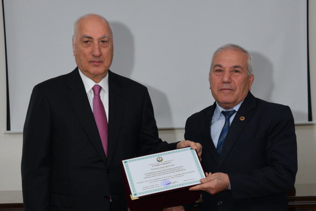Daha sonra cənab Zakir Fərəcov Fəxri fərmanları öz sahiblərinə təqdim etdi.