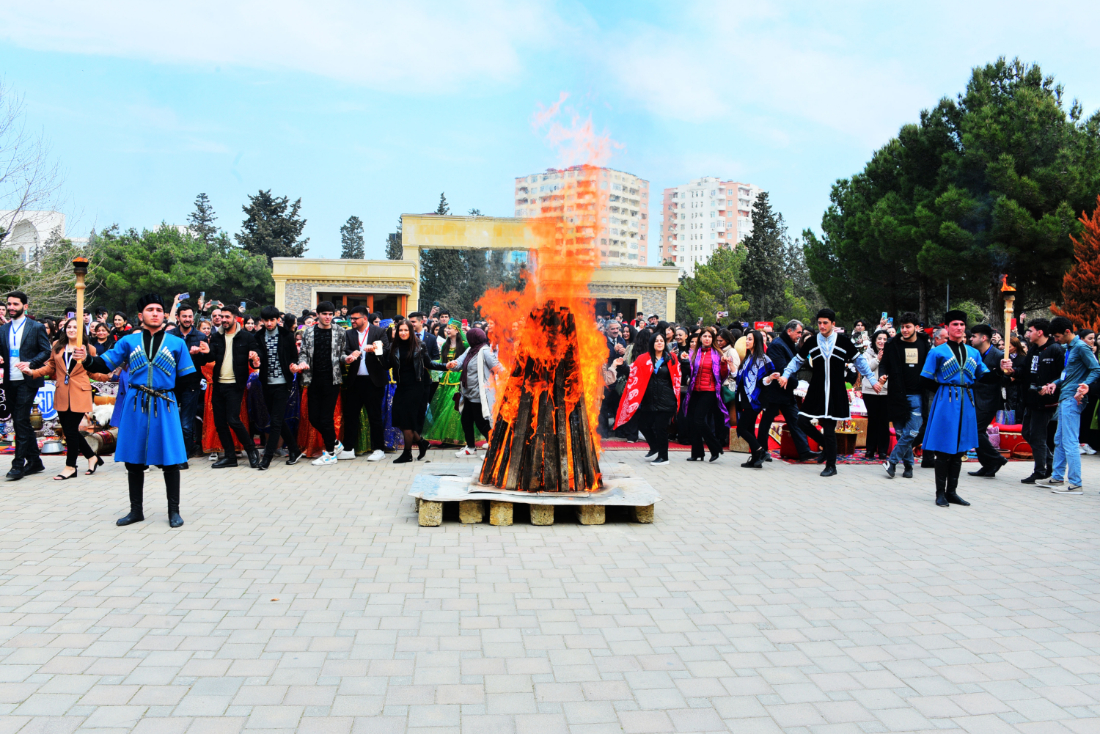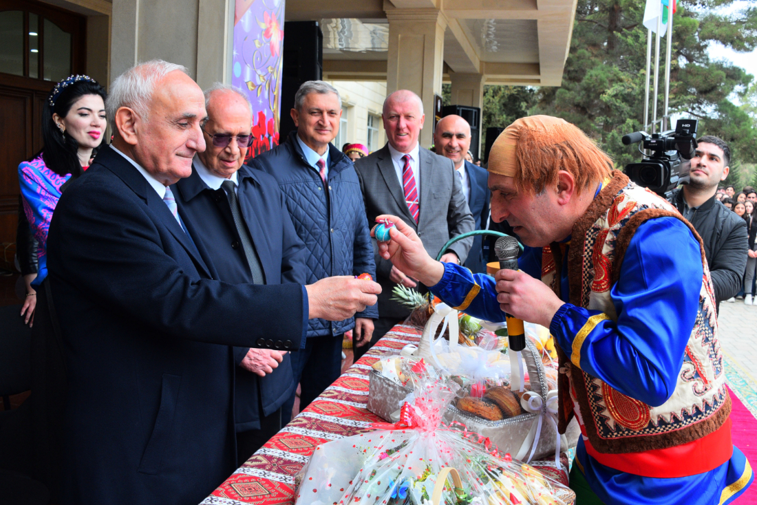 Bayramın özünəməxsus fəlsəfəsi barədə danışan rektor “Novruz”un həyatın yenilənməsi, dirçəlişin rəmzi olduğunu qeyd etdi. Novruz bayramının xalqımızın təhtəlşüurunda bolluq və bərəkətin, xeyirxahlığın təcəssümü kimi kök saldığını, bu bayramın insanları daim birliyə, sülhə və əmin-amanlığa səslədiyini qeyd edən professor Elxan Hüseynov bahar mərasimlərinin, adət-ənənələrin əsrlərin sınağından çıxaraq bu günə gəldiyini bildirdi. Xalqımızın sevə-sevə qeyd etdiyi bu bayram bizim adət-ənənələrimizi əsrlər boyu yaşadıb bu günlərə gətirdiyi kimi, bizi bir xalq olaraq birləşdirir, həmrəyliyə səsləyir. Novruz bütün türk dünyasına xas olsa da, Azərbaycanda daha möhtəşəm qeyd olunur. İnkarolunmaz faktdır ki, Novruz bayramının təşəkkül tapmasında, inkişaf etməsində xalqımızın mühüm töhfəsi, payı vardır. Sovet hakimiyyəti illərində Novruz bayramının keçirilməsinə sərt qadağalar qoyulsa da, xalqımız bu əziz bayramı həmişə qeyd etməyə can atmışdır. Ulu Öndər Heydər Əliyev Azərbaycana rəhbərliyinin birinci dövründə Sovet hakimiyyətinin qadağalarına baxmayaraq, milli ruhun yüksəlişinə təkan verən amillərə xüsusi hörmətlə yanaşmışdır. Ümummilli Lider Azərbaycana rəhbərliyinin ikinci dönəmində həyata keçirdiyi dövlət quruculuğu prosesi ilə paralel olaraq, xalqımızın milli-mənəvi dəyərlərinə tam sahib çıxmasına çalışıb. Bu, xüsusilə Novruz bayramı ilə bağlı məsələlərdə də diqqəti cəlb edirdi. Ulu Öndər hər il qədim milli bayramımız olan Novruzda əhali ilə bayramlaşmağa çıxar, azad və müstəqil xalqımızın Novruz sevinclərindən zövq alardı. Ümummilli Liderin bayram şənliklərində iştirakı, Kosa ilə yumurta döyüşdürməsi, Bahar qız ilə söhbətləri Novruz tədbirlərini daha da şənləndirir, insanların sevincinə səbəb olurdu. Hazırda bu ənənələr Azərbaycan Respublikasının Prezidenti cənab İlham Əliyev tərəfindən davam etdirilir. Novruzu milli-mənəvi dəyərlərimizin təcəssümü adlandıran dövlət başçımızın hər il bayram şənliklərinə qatılması, əhali ilə bayramlaşması, Bakının qədim meydanındakı tonqalı alovlandırması bayram ovqatını daha da artırmaqla yanaşı, xalqla iqtidar arasında sıx vəhdəti də sübut edir. Parlaq Zəfərimizdən sonra artıq üçüncü ildir ki, azad edilmiş ərazilərimizdə bayram tonqalları qalanır, Novruz bayramı qeyd edilir.