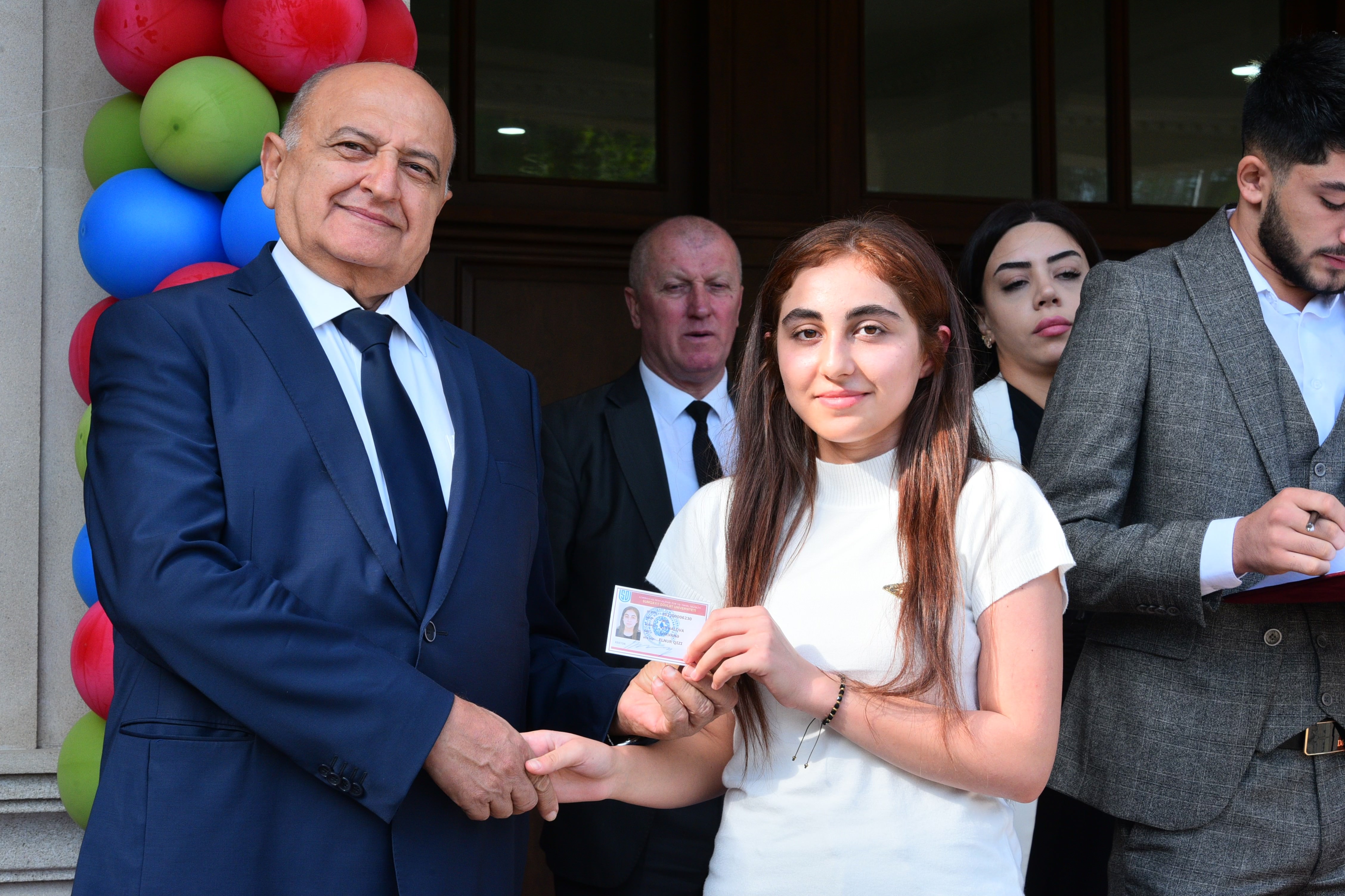 Sonra qəbul imtahanlarında yüksək bal toplamış birinci kurs tələbələrinə tələbə biletləri və xatirə hədiyyələri təqdim edildi.