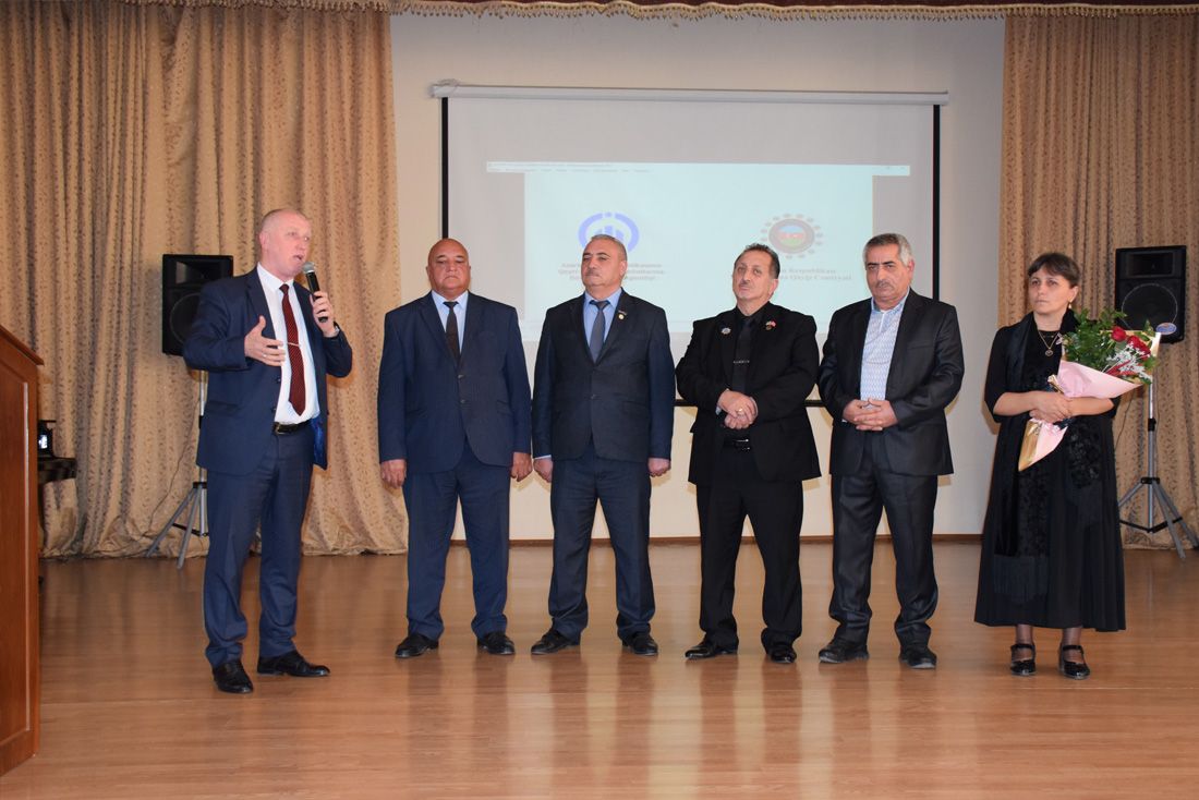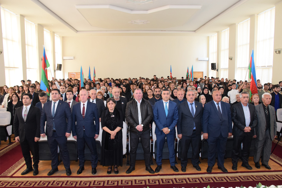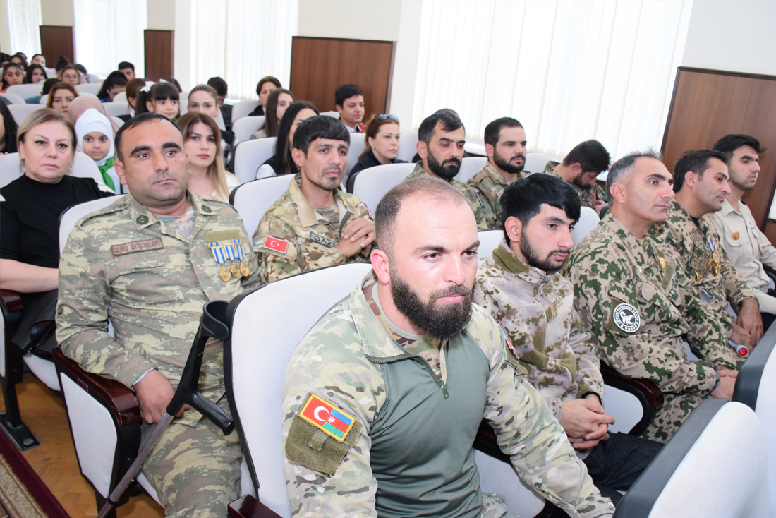 Tədbirin sonunda Şəhid Ailələrinə Qayğı Cəmiyyətinin sədri Müşfiq Əliyev bir sıra tədbir iştirakçılarının, o cümlədən prorektor Elmar Xəlilovun birliyin döş nişanı ilə təltif olunduğunu bildirərək mükafatları təqdim etdi.