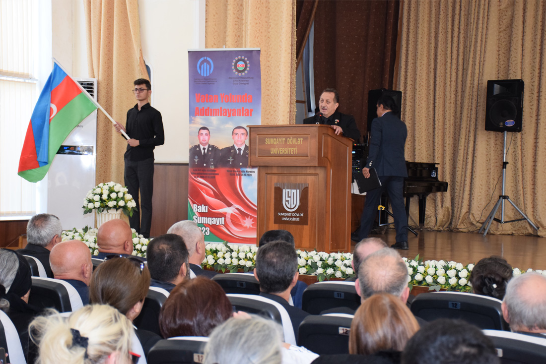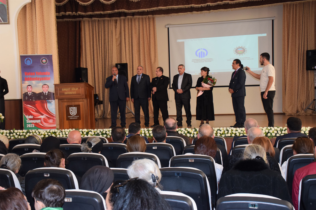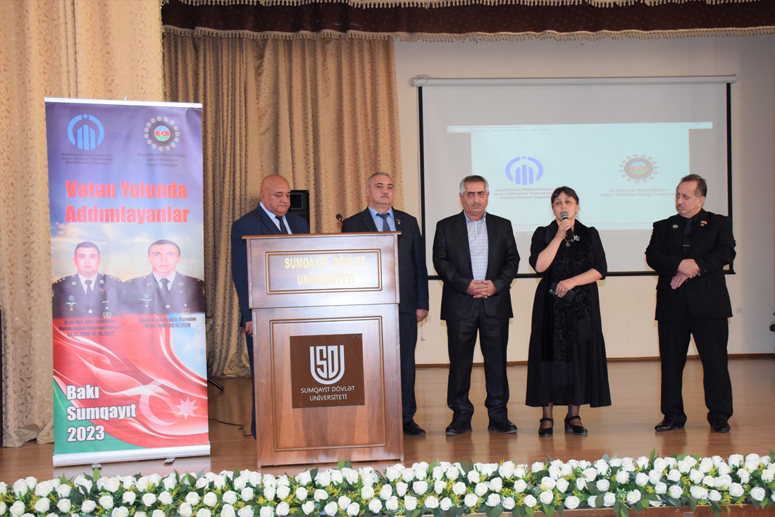 Oktyabrın 20-də Sumqayıt Dövlət Universitetinin Böyük Akt zalında Vətən müharibəsində şəhidlik zirvəsinə ucalan Vüsal Muradov və Azad Hümbətovun xatirəsinə həsr olunmuş “Vətən yolunda addımlayanlar” filminin təqdimatı keçirildi.