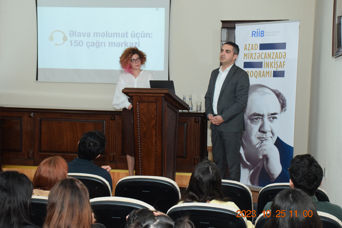 Oktyabrın 25-də Sumqayıt Dövlət Universitetində “Regional İnkişaf” İctimai Birliyi (RİİB) tərəfindən icra olunan Akademik Azad Mirzəcanzadə adına inkişaf proqramının təqdimatı keçirildi.
