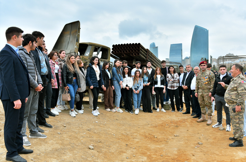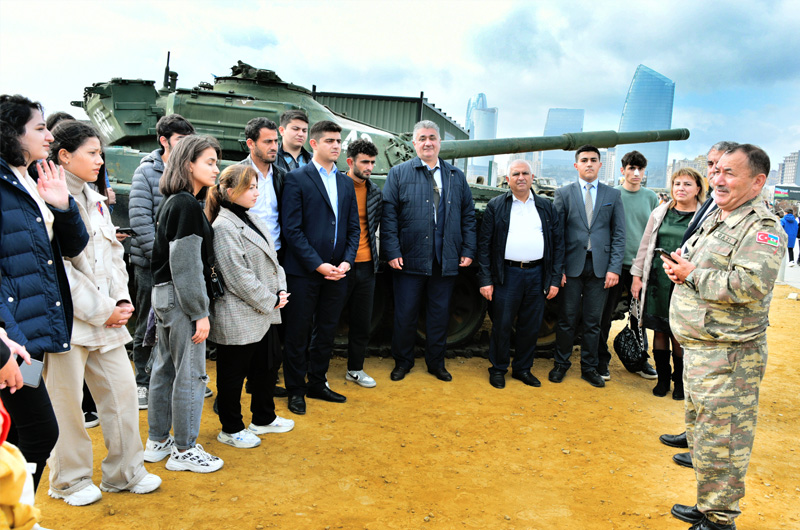 Sumqayıt Dövlət Universitetinin baş müəllimi, polkovnik-leytenant Tapdıq Hacıyevin bələdçiliyi ilə tələbələrimiz parkdakı döyüş sursatları haqqında daha ətraflı məlumat əldə ediblər.