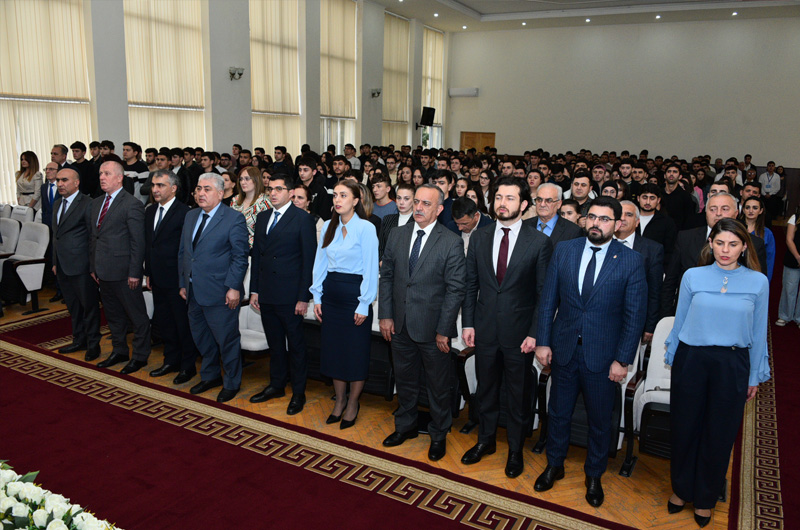 Universitetin Akt zalında davam edən tədbirdə Azərbaycan Respublikasının Dövlət Himni səsləndirildikdən sonra 44 günlük Vətən müharibəsində və ölkəmizin ərazi bütövlüyü uğrunda canından keçən şəhidlərimizin əziz xatirəsi bir dəqiqəlik sükutla yad edildi.
