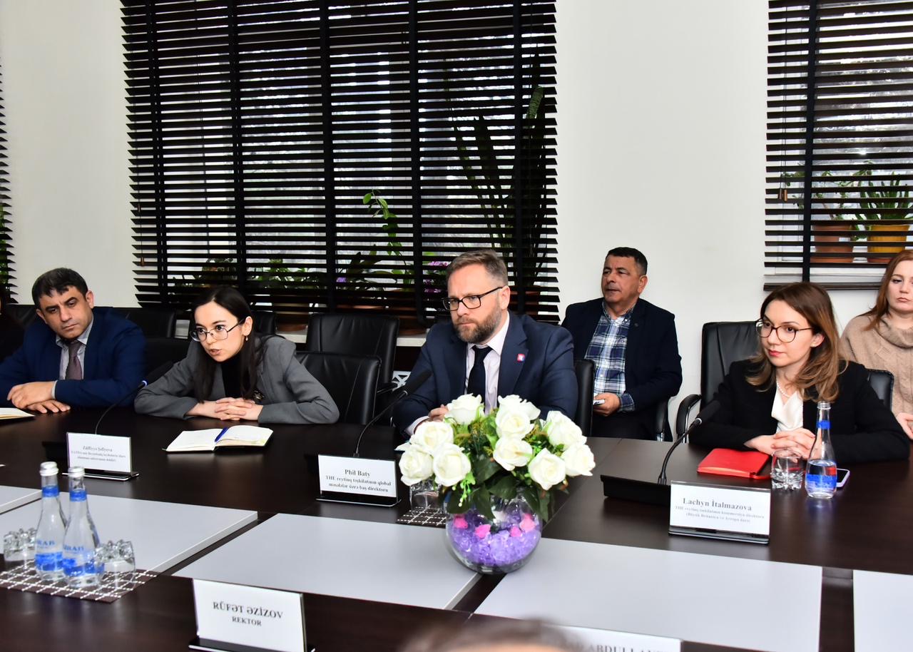 Yanvarın 25-də ali təhsil müəssisələrinin beynəlxalq reytinqini nəşr edən “Times Higher Education” (THE) Beynəlxalq Reytinq Agentliyinin qlobal məsələlər üzrə rəhbəri Phil Bati, Böyük Britaniya və Avropa üzrə kommersiya direktoru Laçın İtalmazova və Elm və Ali Təhsil üzrə Dövlət Agentliyinin Beynəlxalq layihələrin idarə olunması sektorunun müdiri Zülfiyyə Şəfiyeva ilə Sumqayıt Dövlət Universitetində (SDU) görüş keçirilib.
