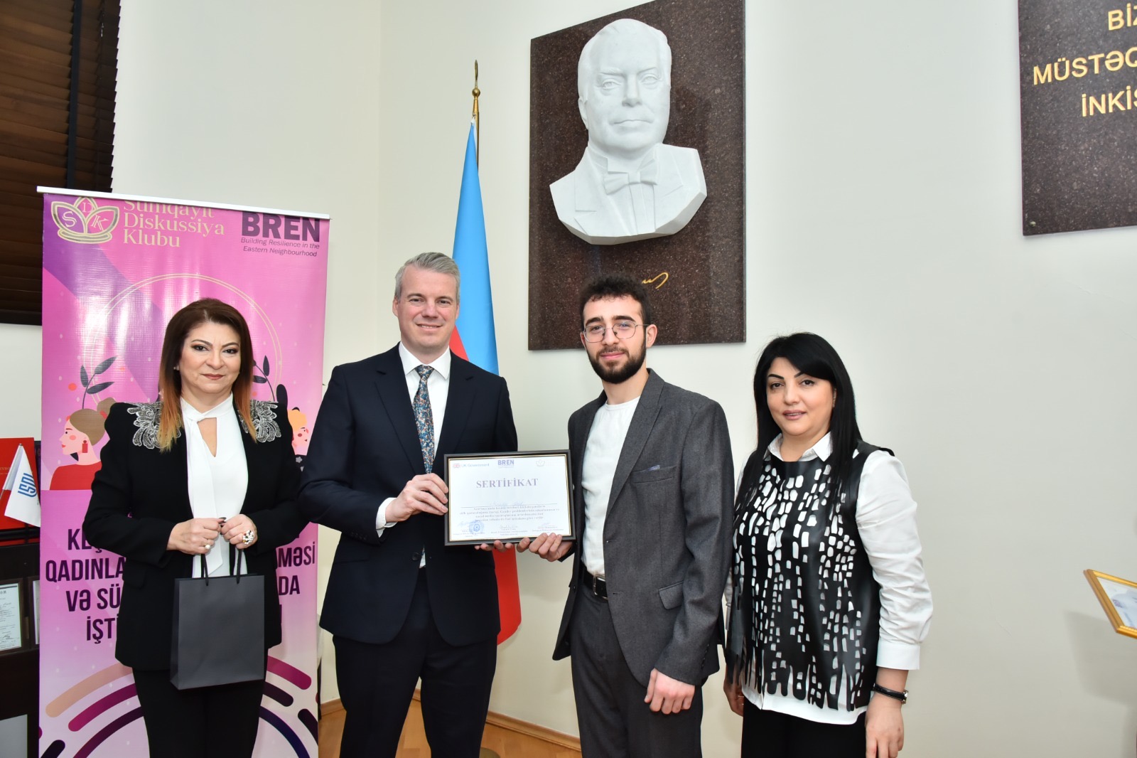 Böyük Britaniyanın Azərbaycandakı səfirliyinin və Sumqayıt Diskussiya Klubunun təşkilatçılığı və BREN proqramı çərçivəsində “Sülh quruculuğu və gender bərabərliyi üçün keçmiş məcburi köçkünlərin sosial media bacarıqlarının artırılması” layihəsində Sumqayıt Dövlət Universitetində təhsil alan keçmiş məcburi köçkünlərdən olan tələbələr iştirak edərək diplom və sertifikata layiq görülmüşdülər.