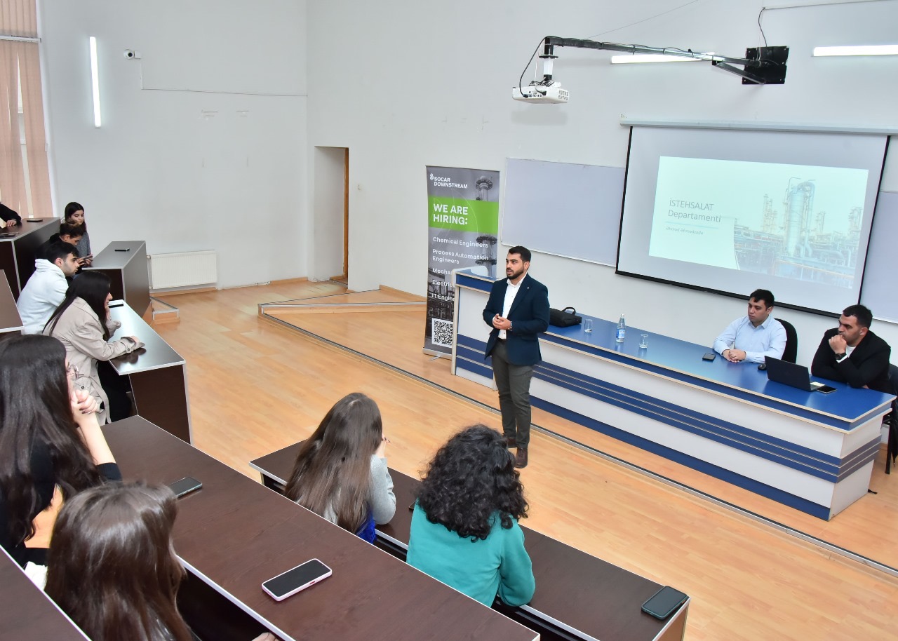 İlk olaraq düşərgəni “SOCAR Downstream Management” MMC-nin əməkdaşlarından İşə qəbul rəhbəri Ülvi Gülüşov açaraq gələcək mühəndislərin şirkətlə bağlı məlumatlandırılmasını təmin etmək məqsədilə təqdimatla çıxış etdi. İstehsalat üzrə böyük mütəxəssis Əhməd Əhmədzadə və Mexanika üzrə menecer Fərid Novruzov isə şirkətin istehsal sahələri, fəaliyyət istiqamətləri, hədəfləri və əmək şəraiti haqqında ətraflı məlumat verdilər.Təqdimatdan sonra tədbirin sual-cavab qismində fəallığı ilə seçilən tələbələr “SOCAR Downstream Management” MMC-nin hədiyyələri ilə mükafatlandırıldılar.