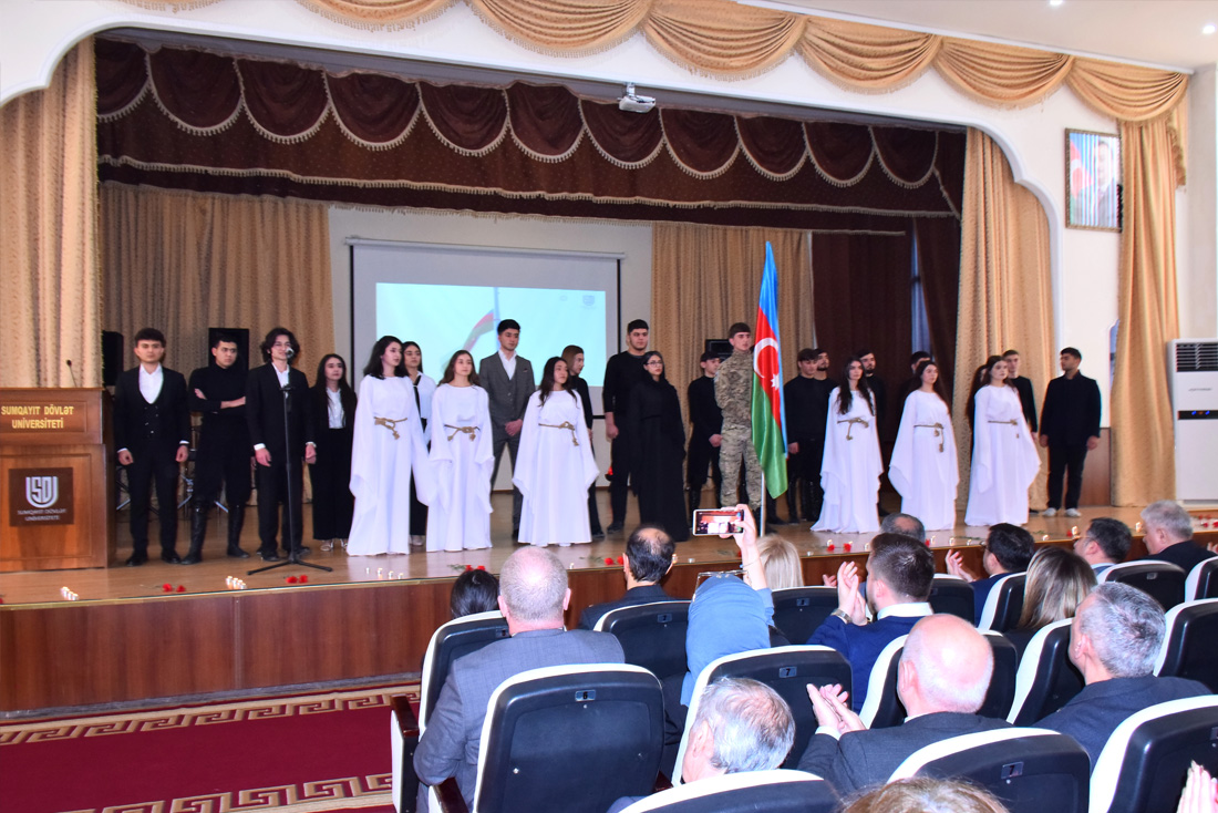 Fevralın 23-də Sumqayıt Dövlət Universitetində Xocalı soyqırımının 32-ci ildönümünə həsr olunmuş “Zülmətdən işığa” adlı ədəbi-bədii tədbir keçirildi.