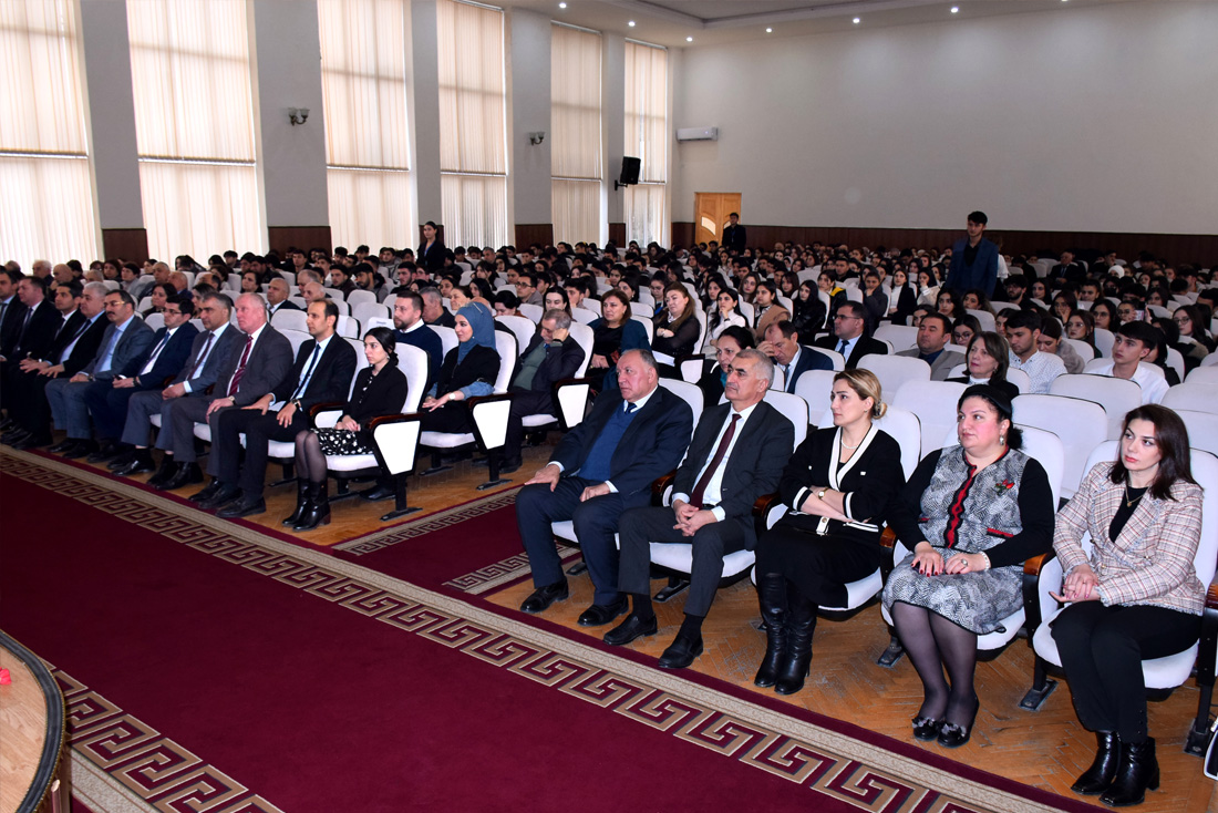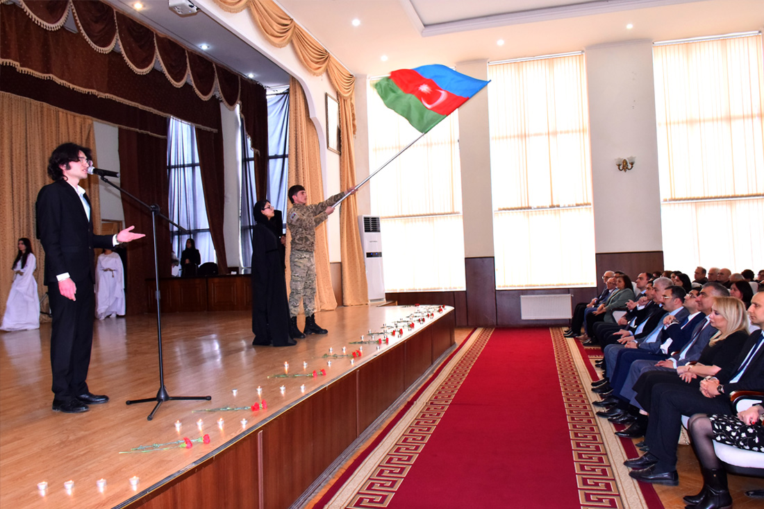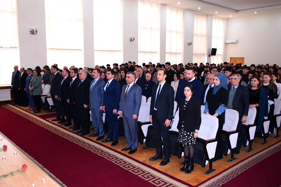 Tədbiri giriş sözü ilə açan rektor dosent Rüfət Əzizov Azərbaycan xalqının tarixinə qara səhifə kimi yazılmış Xocalı faciəsinin dəhşətlərindən bəhs etdi. Qeyd etdi ki, xalqımızın və bəşəriyyətin tarixinə qanlı faciə kimi daxil olmuş Xocalı soyqırımından 32 il keçir.
