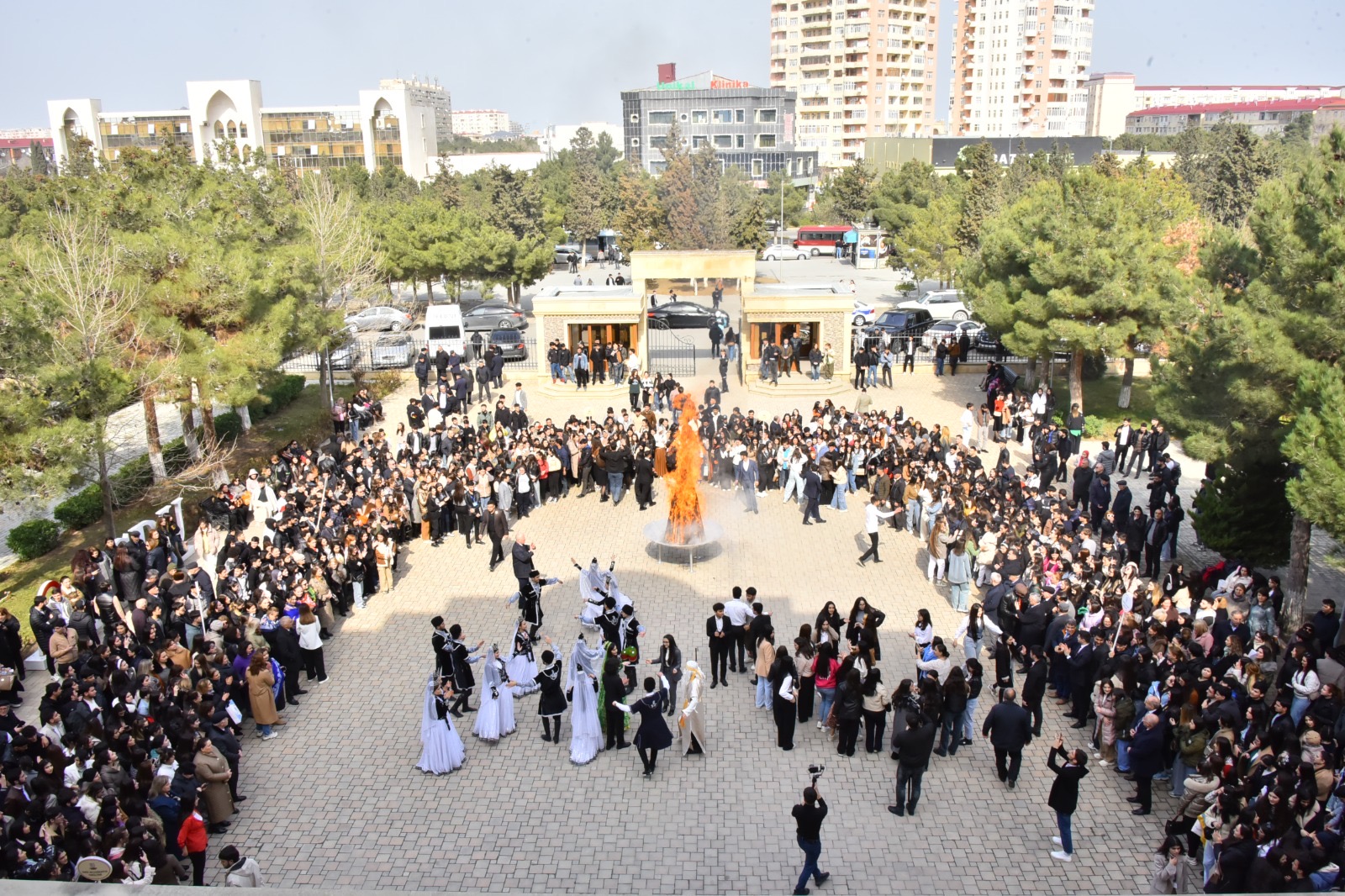 Daha sonra bayram tonqalı qalanıb. Konsert proqramı ilə davam edən bayram tədbiri Novruz personajlarının iştirakı, qonaq müğənnilərin və istedadlı tələbələrimizin ifaları, universitetin “Səma” rəqs qrupunun rəngarəng rəqsləri ilə davam edib.