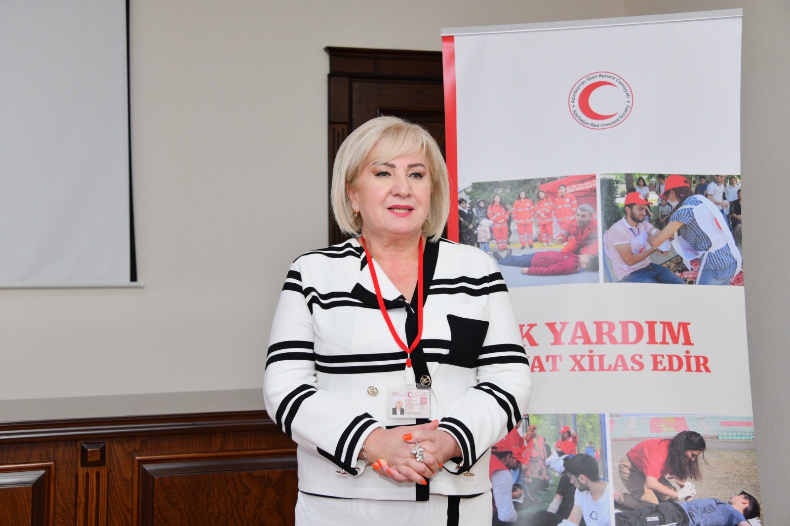 Qızıl Aypara Cəmiyyətinin Sumqayıt şəhər bölməsinin sədri Mətanət Məhərrəmova çıxış edərək, rəhbərlik etdiyi qurumun fəaliyyət istiqamətləri və həyata keçirdiyi layihələrdən bəhs etdi. Bildirdi ki, belə tədbirlərin keçirilməsində məqsəd tələbələr arasında ilkin yardım bacarıqlarının formalaşdırılması və eyni zamanda bu sahədə maarifləndirmə işlərinin aparılmasıdır.