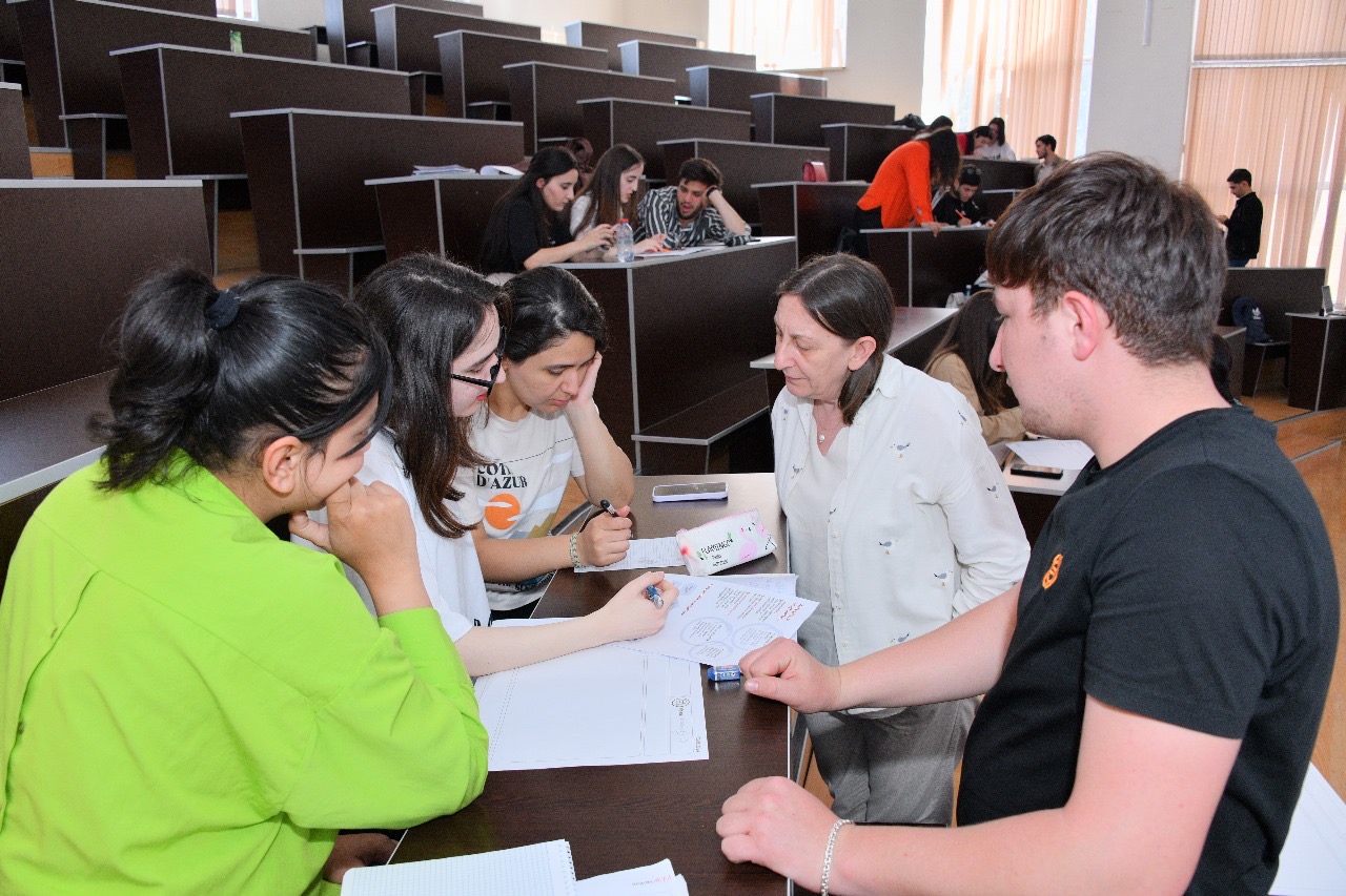 Mayın 3-ü Sumqayıt Dövlət Universitetində SABAH.Academy-nin təşkilatçılığı ilə həyata keçirilən “Əsaslı Dizayn metodu ilə Sahibkarlıq və Yeni Biznesin İnkişafı” Proqramı çərçivəsində Orta Şərq Texniki Universitetinin Sənaye Dizaynı Departamentinin sədr müavini dosent Fatma Korkut və departamentin köməkçi professoru Güzin Sen “Dizayna giriş: Axın qrafikləri və sxemlər” mövzusunda dərs keçdilər. Tələbələrə dizayn axın qrafiklərinin qurulmasında məqsədi müəyyənləşdirmək, növlərə ayırmaq, simvollarla görünüşü tamamlamaq haqqında izah verildi. Onlar dərs müddətində qrup formasında verilən tapşırıqların axın qrafikini qurub müzakirə etdilər.