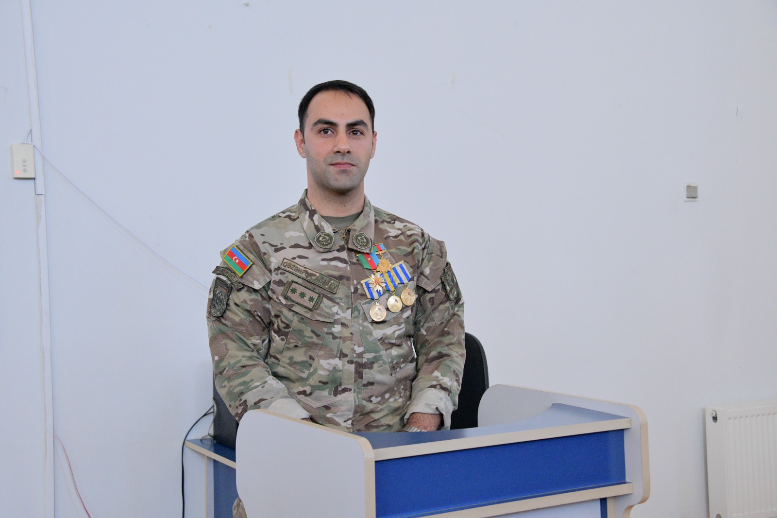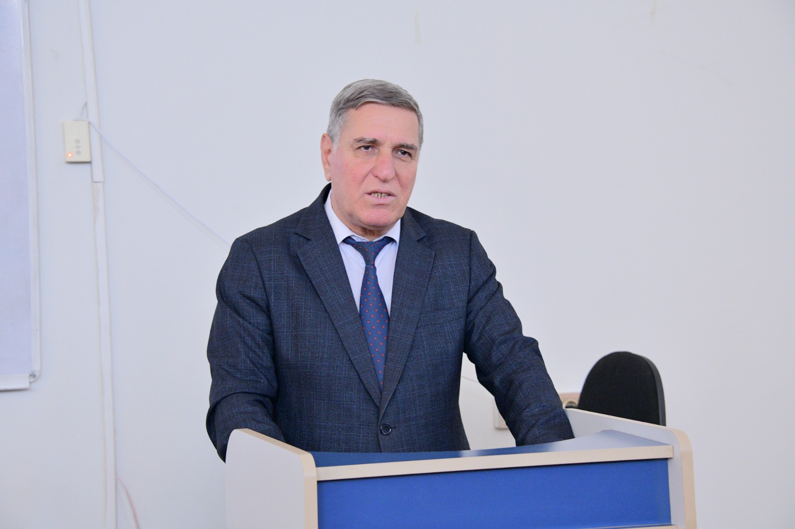 Tədbiri giriş sözü ilə universitetin Sosial məsələlər və ictimaiyyətlə əlaqələr üzrə prorektoru dosent Elmar Xəlilov açaraq qonaqları və iştirakçıları salamladı. Bildirdi ki, Azərbaycanın güclü orduya, təkmilləşmiş hərbi sistemə, inkişaf etmiş müdafiə sənayesinə malik olması respublikanın və əhalinin təhlükəsizliyi baxımından böyük önəm kəsb edir. Ölkənin müdafiə qabiliyyətinin gücləndirilməsi və milli təhlükəsizliyinin təmin edilməsinə dövlət tərəfindən xüsusi diqqət yetirilir. Azərbaycan iqtisadiyyatının digər sahələri kimi müdafiə sənayesi də sürətlə inkişaf edir və bu sahənin inkişafı Prezident, Silahlı Qüvvələrin Ali Baş Komandanı İlham Əliyevin birbaşa nəzarəti altındadır. 44 günlük Vətən müharibəsi Azərbaycan Ordusu ilə yanaşı, həm də ölkənin, yəni yerli müdafiə sənayesi sektorunun potensialını meydana çıxardı. İndi bütün azad edilmiş torpaqlarımızda Azərbaycan bayrağı qürurla dalğalanır. Bu gün Milli Ordumuzun gücündən danışarkən gənclərimizin vətənpərlik ruhunun yüksək olmasını xüsusi vurğulamaq lazımdır. Bu istiqamətdə belə görüşlərin keçirilməsi xüsusi əhəmiyyət kəsb edir.