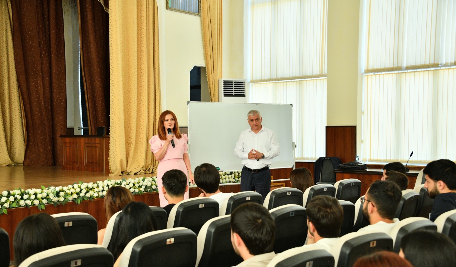 Təlimin birinci hissəsində SOCAR AQŞ-nin əməliyyatlara dəstək xidmətləri üzrə meneceri Rövşən Bayramov şəxsi təcrübəsini tələbələrlə bölüşərək, “Komandaya əsaslanan karyera yolunda uğur bələdçisi” mövzusunda təqdimatla çıxış etdi, mühəndislik sahəsində liderlik, texnoloji dəstək və çətin şəraitdən çoxşaxəli kompleks əməliyyatların idarə edilməsindən bəhs etdi.