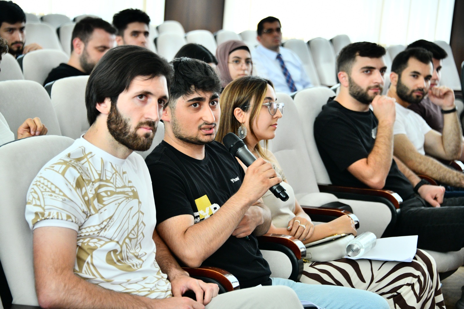Təlimin ikinci hissəsində SDU-nun rektoru dosent Rüfət Əzizov “Gələcək mühəndislər” təlim proqramının əhəmiyyətindən bəhs etdi, mühəndislik sahəsində təhsil alan tələbələrə təlimin məqsədi, perspektivləri barədə məlumat verdi.