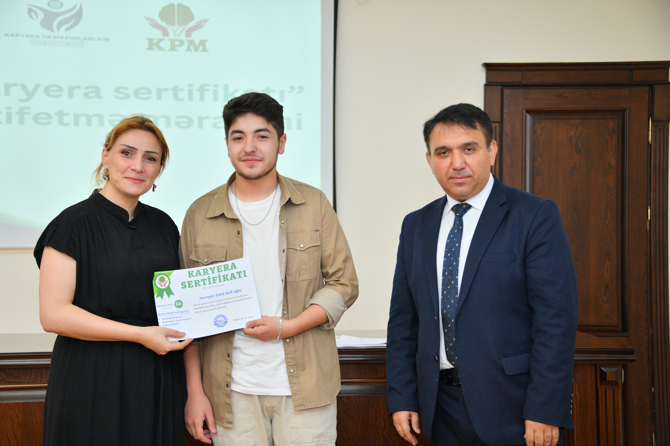 Karyera və Psixologiya Mərkəzinin rəhbəri Samir Vəliyev “Karyera sertifikatı” na layiq görülən tələbələri təbrik etdi və bir qrup tələbəyə Mərkəzin təcrübə proqramında iştiraklarına və koordinatorluqlarına görə Arayış və “Karyera sertifikatı” təqdim etdi.