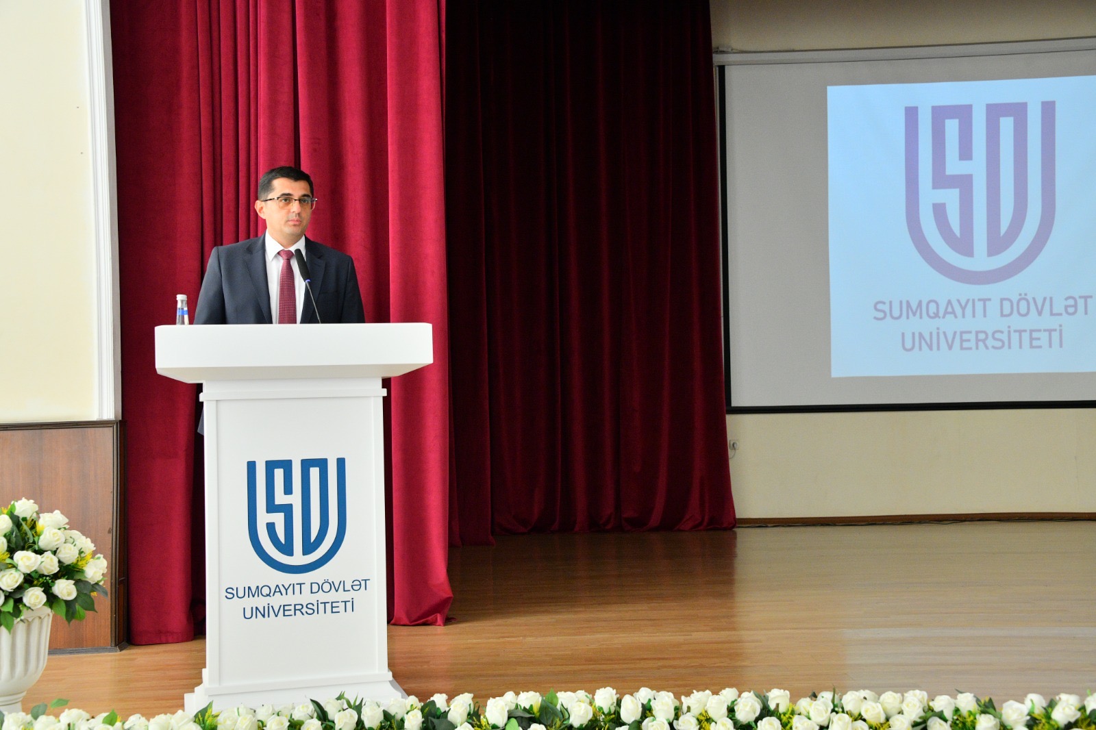 Sumqayıt Dövlət Universitetinin rektoru Rüfət Əzizov çıxışında professor Siram Ramakrişnanı SDU-da görməkdən məmnunluğunu ifadə edib, tədbirin universitetin hədəflərindən olan sənaye müəssisələrinin tədqiqat ehtiyaclarını öyrənmək və birgə elmi-tədqiqatlar aparmaq baxımından mühüm məna kəsb etdiyini bildirib. Rektor, həmçinin universitetin qarşısında duran hədəflərdən, yeni tədris ilindən və yeni çağırışlardan bəhs edib.