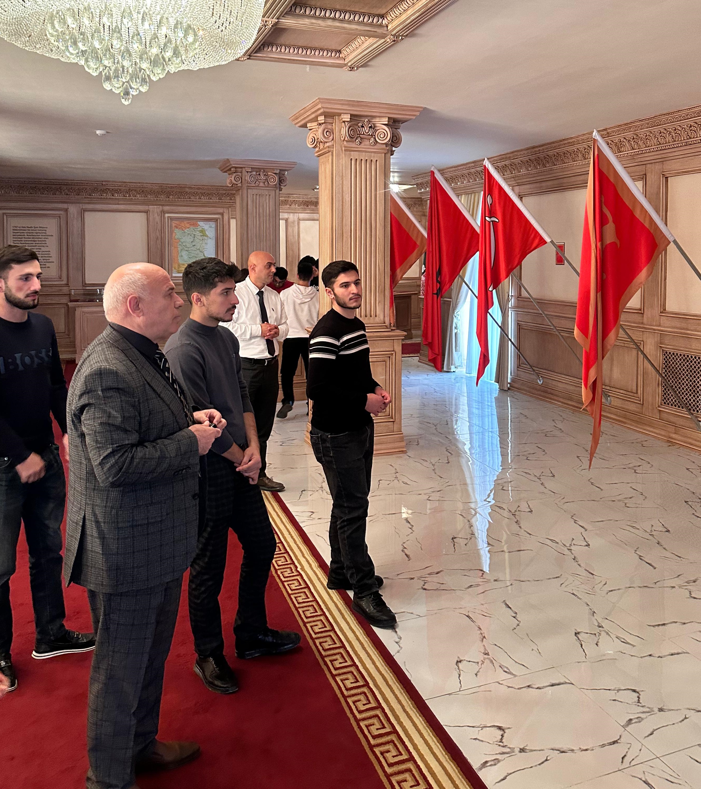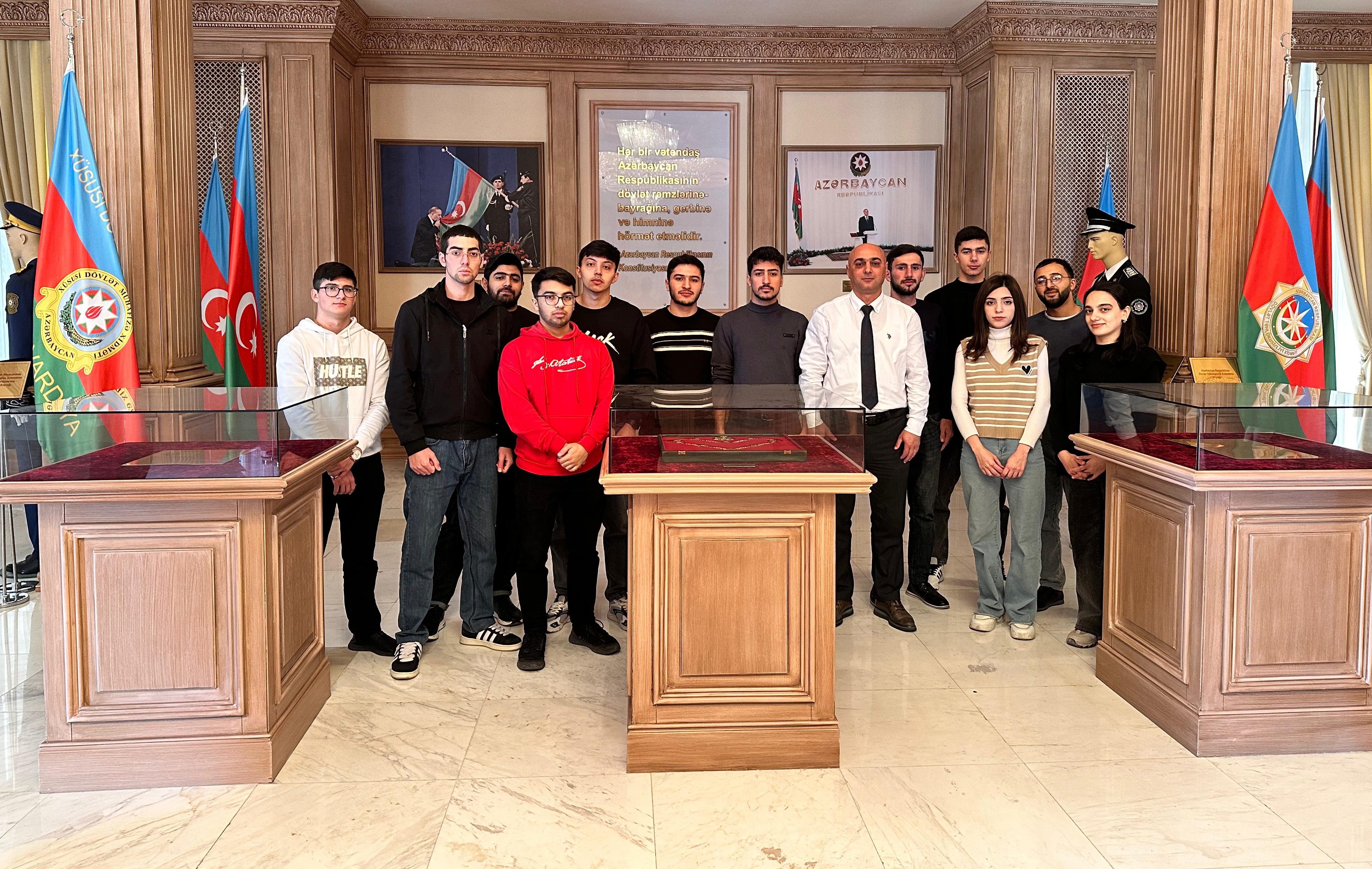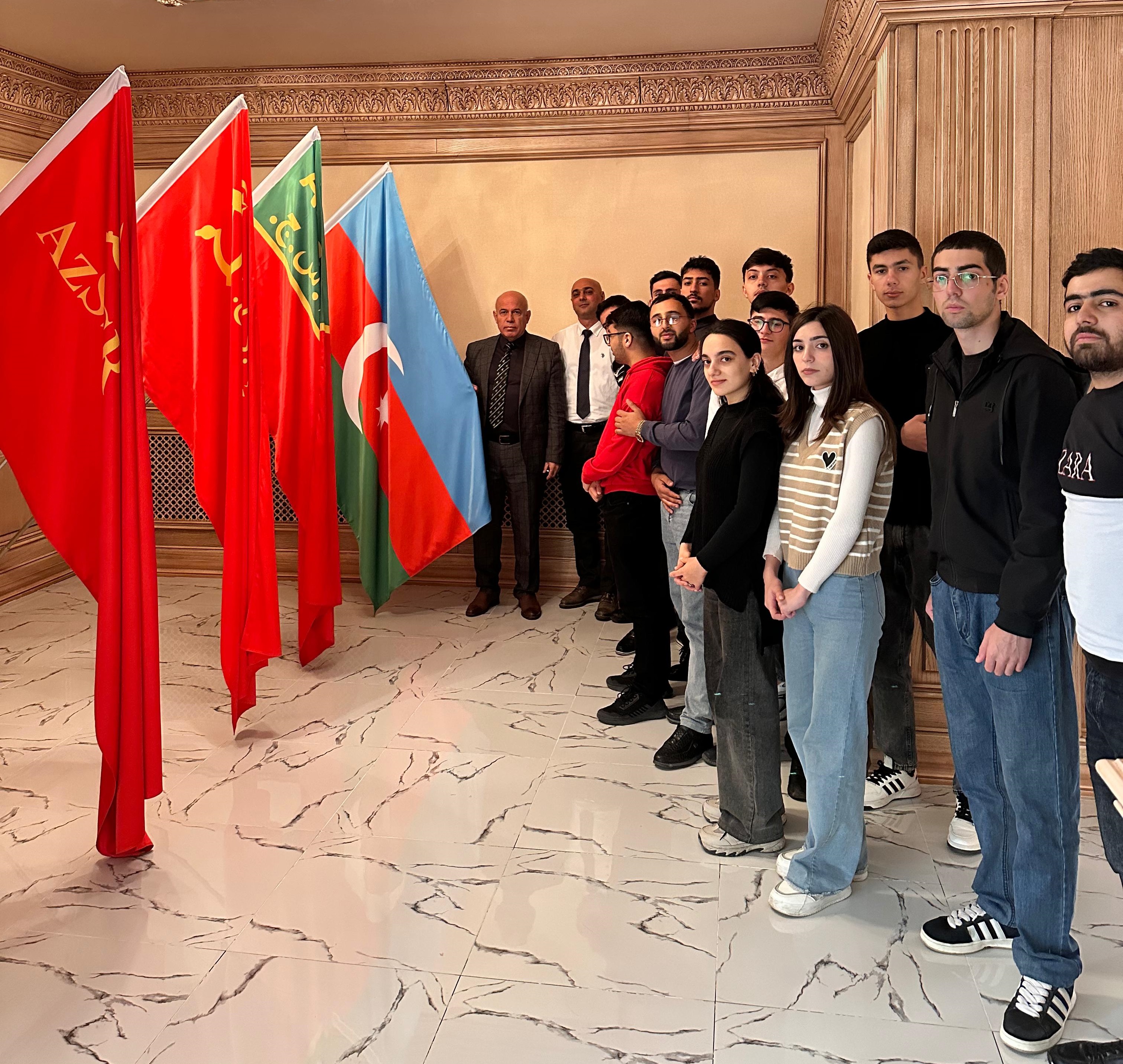 Noyabrın 4-də Sumqayıt Dövlət Universitetinin (SDU) Tarix və coğrafiya fakültəsinin Azərbaycan və Şərqi Avropa xalqları tarixi kafedrası 9 noyabr Dövlət Bayrağı Gününə həsr edilmiş ekskursiya təşkil edib. Bu ekskursiya Sumqayıt şəhərində yerləşən Bayraq Muzeyində baş tutub və tələbələr arasında vətənpərvərlik dəyərlərinin aşılanması məqsədini daşıyırdı. Ekskursiyada kafedra müdiri professor Şirxan Səlimov, baş müəllim Pərviz Cəfərov və fakültənin 855 saylı qrupunun tələbələri iştirak ediblər. Ekskursiya Azərbaycan və Şərqi Avropa xalqları tarixi kafedrasının İllik Fəaliyyət Planına uyğun olaraq təşkil olunub və gənc nəslin milli dəyərlərə bağlılığını artırmaq məqsədi daşıyıb. Bayraq Muzeyinə təşkil olunan ekskursiya zamanı SDU-nun tələbə və müəllim heyəti muzeyin peşəkar bələdçiləri tərəfindən qarşılanıb. Muzey bələdçiləri qonaqlara Azərbaycan Respublikasının Dövlət Bayrağının tarixi, simvolik mənası və bayrağın milli rəmz kimi xalqımız üçün əhəmiyyəti haqqında ətraflı məlumat veriblər. Ekskursiya zamanı muzeyin ekspozisiya zallarında nümayiş etdirilən tarixi eksponatlar diqqəti cəlb edib. Bu eksponatlar arasında Azərbaycan xalqının keçmişini əks etdirən qədim bayraqlar, döyüş bayraqları və digər milli rəmzlər nümayiş olunub. Tələbələr və müəllimlər muzeydə sərgilənən eksponatları böyük maraqla izləyiblər, tarixi hadisələr və bayrağımızın inkişaf mərhələləri ilə yaxından tanış olublar. Professor Şirxan Səlimov ekskursiya zamanı qeyd edib ki, belə tədbirlər gənclərin milli tariximizə və mədəniyyətimizə daha dərindən bələd olmasında və onlarda vətənpərvərlik hissinin möhkəmlənməsində əhəmiyyətli rol oynayır. O, vurğulayıb ki, Dövlət Bayrağı Günü ərəfəsində Bayraq Muzeyinə ekskursiyanın təşkil olunması tələbələrin milli dəyərlərə bağlılığını gücləndirmək baxımından çox önəmlidir. Ekskursiyada iştirak edən tələbələr muzeyin təqdim etdiyi məlumatları canlı olaraq izləməkdən və Azərbaycan bayrağının keçdiyi tarixi yolu, onun xalqımız üçün əhəmiyyətini öyrənməkdən böyük zövq alıblar. Tələbələr muzeyin təqdim etdiyi informasiya vasitəsilə dövlət atributlarının mahiyyəti və dəyəri haqqında daha ətraflı məlumat əldə ediblər. Sumqayıt Dövlət Universitetinin Tarix və coğrafiya fakültəsi gələcəkdə də tələbələrin milli-mənəvi dəyərlərə bağlılığını gücləndirmək məqsədilə bu tip ekskursiya və tədbirlərin keçirilməsini planlaşdırır. Bu kimi ekskursiyalar tələbələrin tarix və mədəniyyət biliklərinin artırılması, milli dəyərlərin gələcək nəsillərə ötürülməsi baxımından əvəzsizdir.