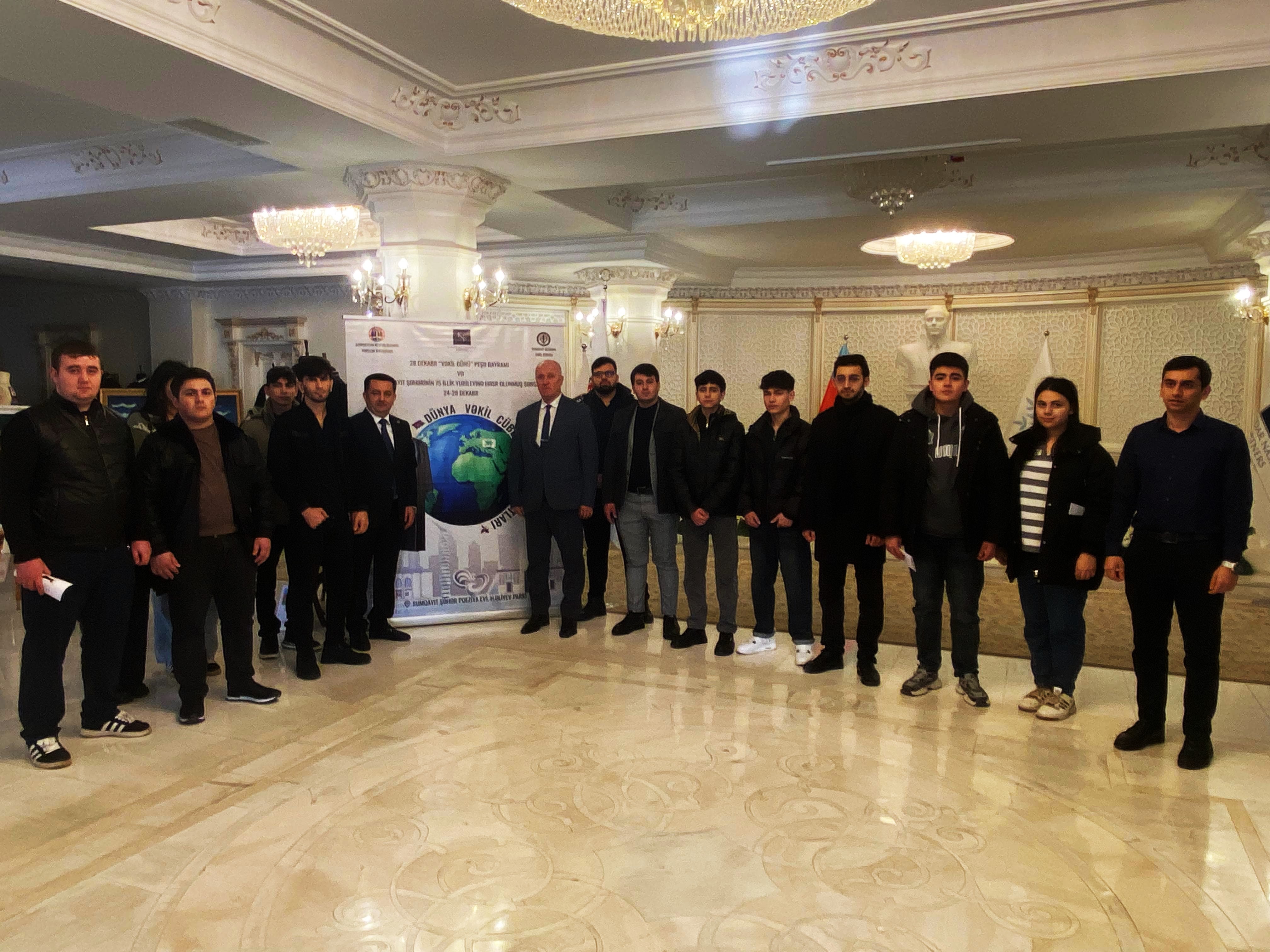 Dekabrın 24-də Sumqayıt Dövlət Universitetinin Tələbə Həmkarlar İttifaqı Komitəsi və Tələbə Gənclər Təşkilatının dəstəyi ilə bir qrup tələbə Sumqayıt şəhərində keçirilən “Dünya vəkil cübbələri və atributları” sərgisində iştirak ediblər. Tədbir 28 dekabr – “Vəkil Günü” peşə bayramına və Sumqayıt şəhərinin 75 illiyinə həsr olunub. Sərgidə Azərbaycan Respublikasının Vəkillər Kollegiyasının üzvü Kamandar Nəsibovun şəxsi kolleksiyasından dünyanın müxtəlif ölkələrinə aid 100-dən çox vəkil və hakim cübbəsi, eləcə də vəkillik peşəsinə aid müxtəlif atributlar nümayiş etdirilib. Tədbir çərçivəsində iştirakçılara məlumatlandırıcı bukletlər də təqdim olunub. Qeyd edək ki, sərgi 28 dekabr tarixinədək davam edəcək.