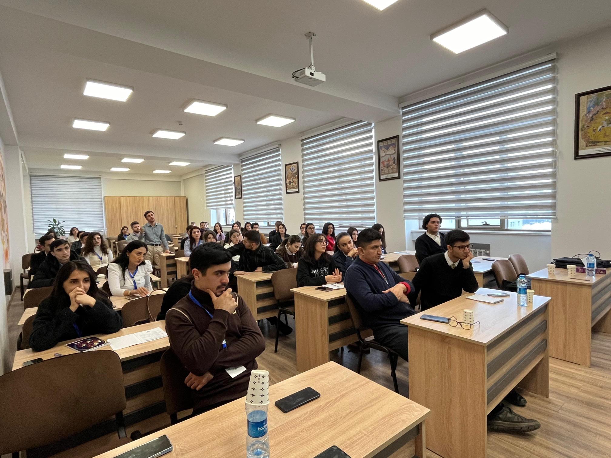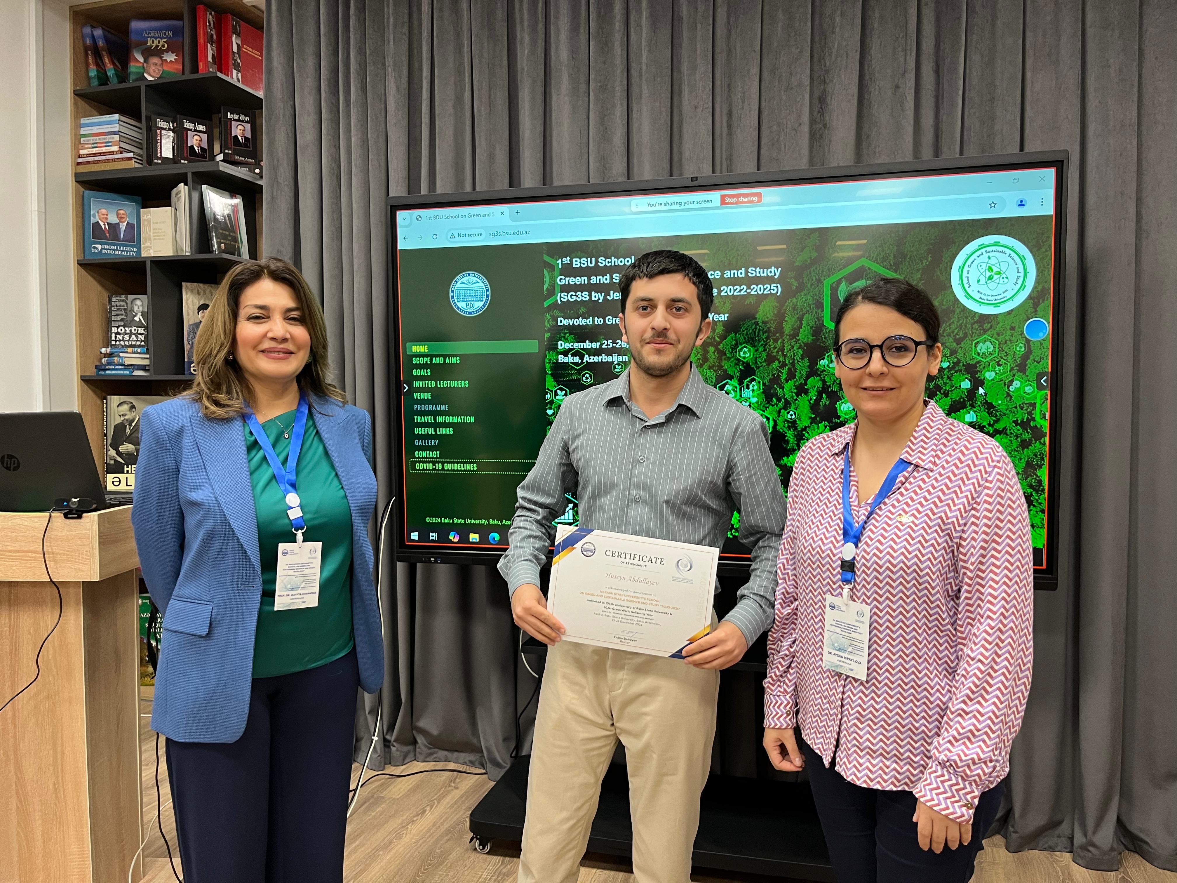 Sumqayıt Dövlət Universiteti (SDU) təhsil və elmi tədqiqat sahəsində müasir tələblərə uyğun olaraq tələbələrin inkişafını dəstəkləmək və onları təlimlərə cəlb edilməsini təşviq edən bir çox layihə və proqramlar həyata keçirir. Universitet yerli və beynəlxalq əməkdaşlıq imkanlarından istifadə edərək tələbələrin müxtəlif sahələrdə təcrübə qazanmalarına şərait yaradır. Bu istiqamətdə SDU –nun Təbiət elmləri fakültəsinin magistrantları Hüseyn Abdullayev, Mirhüseyn Ağalarov 25-26 dekabr 2024-cü il tarixlərində Bakı Dövlət Universiteti (BDU), İslam Dünyası Təhsil, Elm və Mədəniyyət Təşkilatı (ICESCO) və “Erasmus+Jean Monnet Module” layihəsinin birgə təşkilatçılığı ilə BDU-nun 105 illik yubileyinə və “Yaşıl dünya naminə həmrəylik ili”nə həsr olunmuş “Yaşıl və davamlı elm və tədris üzrə I BDU Məktəbi”nin təlimində iştirak ediblər. İngilis dilində iki gün davam edən təlimlərdə BDU və beynəlxalq təşkilatların aparıcı alim və təhsil mütəxəssisləri tərəfindən nanotexnologiya, davamlı kənd təsərrüfatı, dərman dizaynı və ekoloji təhlükəsizlik mövzularında elmi və maarifləndirici çıxışları dinlənilib. Təlimin sonunda magistrantlarımız sertifikata layiq görülüblər.