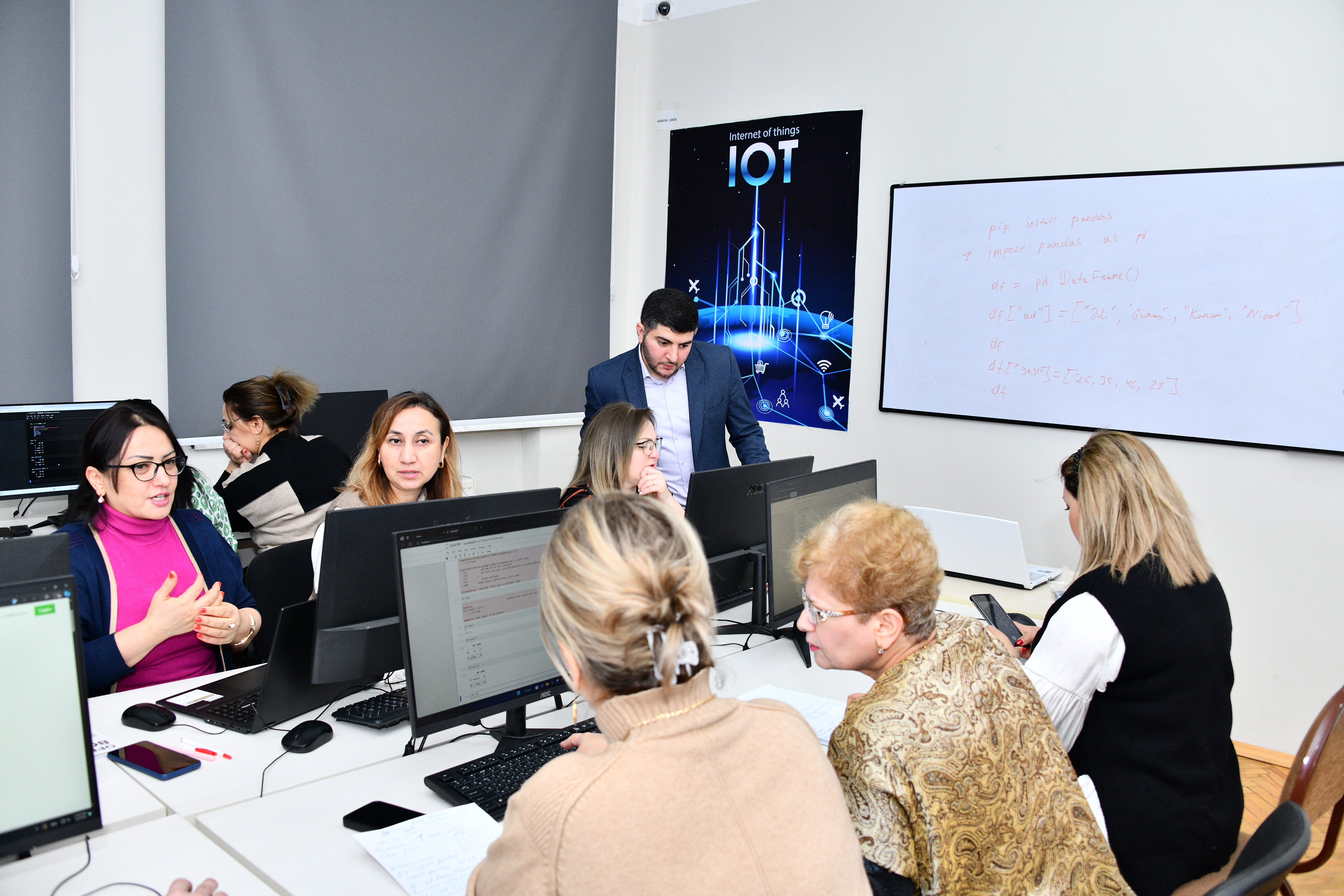 Sumqayıt Dövlət Universitetinin (SDU) İnsan Kapitalının İdarəedilməsi Mərkəzi tərəfindən əməkdaşlar üçün təşkil olunan növbəti təlim “Data analitikası” mövzusuna həsr olunub. Təlimdə Rektorun İnformasiya texnologiyaları (İT) üzrə müşaviri Əhməd Əhmədzadə və İT kafedrasının baş müəllimi Nərmin İbrahimova məlumatların rolunu və analitik bacarıqların əhəmiyyətini vurğulayıblar. Qeyd ediblər ki, data analitikası məlumatların yığılması, təmizlənməsi və işlənməsi ilə təşkilatlara daha dəqiq və effektiv qərarlar qəbul etməyə imkan verir. Spikerlər müəssisələrin data təhlili və istifadəsi ilə bağlı mövcud təcrübələrdən, yarana biləcək çətinliklərdən və inkişafa ehtiyac olan sahələrdən də bəhs ediblər. Onlar iştirakçılara məlumatların düzgün idarə edilməsi və təhlil edilməsinin biznes nəticələrinə necə müsbət təsir göstərə biləcəyini, eyni zamanda data analitikasında istifadə edilən proqramlaşdırma dilləri haqqında məlumat veriblər. Təlim sual-cavab sessiyası ilə yekunlaşıb.