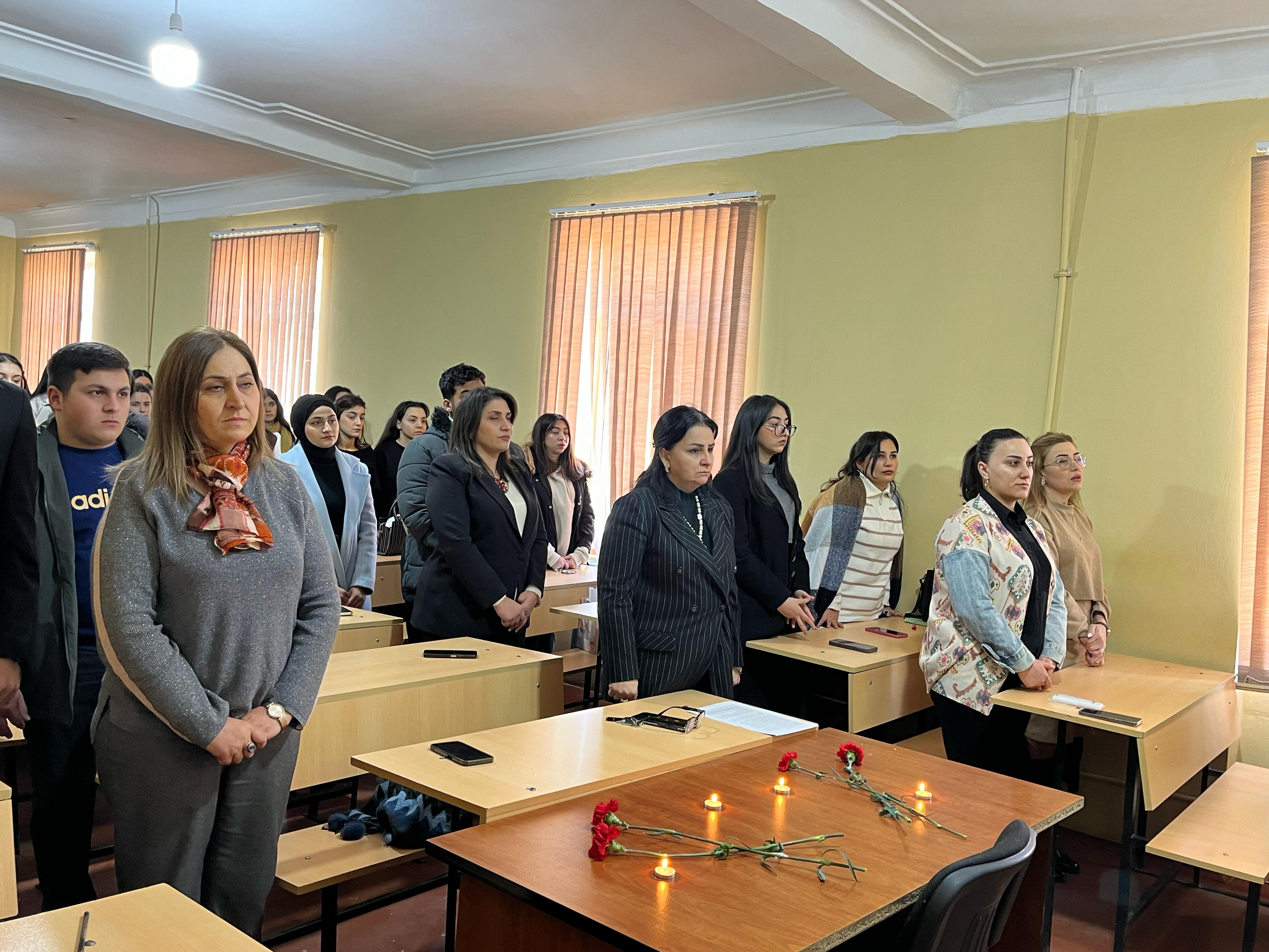 Sumqayıt Dövlət Universitetinin bütün fakültələrində Tələbə Həmkarlar İttifaqı Komitəsinin, Heydər Əliyev Mərkəzində isə Mükəmməllik Mərkəzinin təşkilatçılığı ilə Xocalı soyqırımının 33-cü ildönümünə həsr edilmiş silsilə tədbirlər keçirilib. Öncə Xocalı soyqırımı faciəsinin qurbanlarının xatirəsi bir dəqiqəlik sükutla yad edilib. Tədbirdə Xocalı soyqırımının Azərbaycan xalqının yaddaşında necə silinməz iz qoyduğu vurğulanıb. Bildirilib ki, bu gün müstəqil Azərbaycan öz parlaq qələbəsi ilə yalnız düşmənə sarsıdıcı zərbə vurmaqla kifayətlənməyib, həm də beynəlxalq arenada ədaləti təmin edib. Həmçinin, Xocalı soyqırımının xalqımız tərəfindən unudulmadığını, aparılan elmi tədqiqatlar nəticəsində üzə çıxarılan həqiqətlər və bu həqiqətlərin dünya ictimaiyyətinə çatdırılmasından danışıblar. Tələbələrimiz “Xocalıya ədalət” mözusunda çıxış edərək Xocalı faciəsinin Azərbaycan xalqının tarixində ən dəhşətli hadisə, bəşəriyyətə qarşı yönəlmiş mənfur cinayət olduğunu bildiriblər.