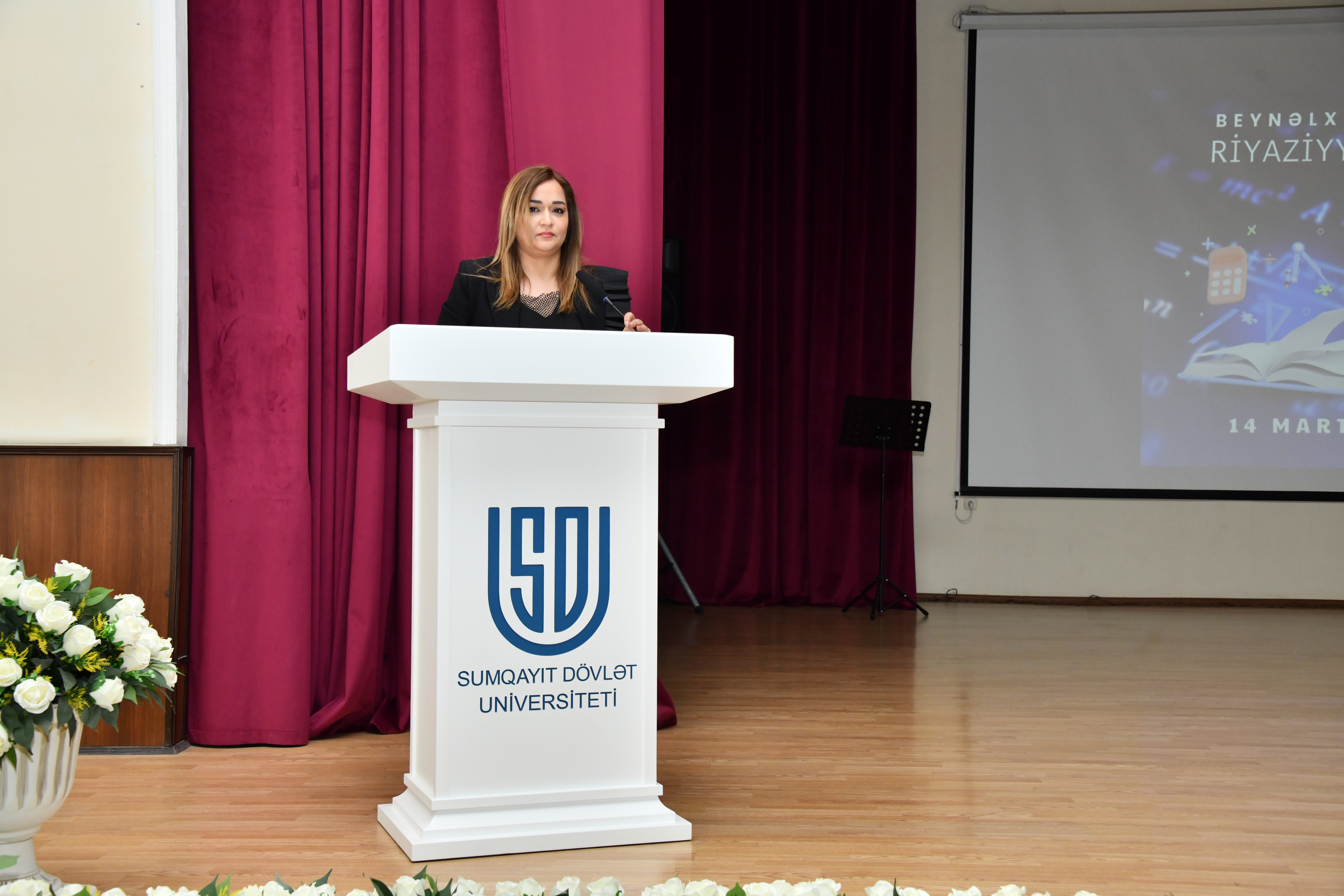Martın 13-də Sumqayıt Dövlət Universitetinin Riyaziyyat fakültəsinin Riyaziyyat və informatikanın tədrisi texnologiyası kafedrasının təşkilatçılığı ilə Beynəlxalq Riyaziyyat Gününə həsr olunmuş “Riyaziyyatın yaradıcılıqdakı rolu” adlı tədbir keçirilib. Tədbirdə universitetin müəllim və tələbələri ilə yanaşı, respublikamızda fəaliyyət göstərən digər ali təhsil müəssisələrinin tələbələri, həmçinin Sumqayıt Dövlət Texniki Kollecinin müəllim-tələbə heyəti və Sumqayıt şəhərindən olan orta məktəb şagirdləri də iştirak ediblər. Bu da müxtəlif yaş qruplarının riyaziyyat və onun yaradıcı tətbiqləri barədə biliklərini genişləndirməyə imkan verib. Tədbiri Riyaziyyat və informatikanın tədrisi texnologiyası kafedrasının müdiri, dosent Məftun Heydərova açaraq qonaq və iştirakçıları salamlayıb, riyaziyyata olan marağın artırılması məqsədilə təşkil olunan tədbirin əhəmiyyətindən bəhs edib. Riyaziyyat fakültəsinin dekanı, dosent Xalidə Həsənova çıxış edərək, riyaziyyat elminin cəmiyyətin bütün sahələrindəki rolundan danışıb. O, riyaziyyatın yalnız nəzəri sahə ilə məhdudlaşmadığını, eyni zamanda gündəlik həyatda da yaradıcı və praktiki tətbiqlərin əsasını təşkil etdiyini vurğulayıb. Sonra riyaziyyatın tədrisinə yenilikçi yanaşmalar gətirən, Azərbaycan Respublikası Elm və Təhsil Nazirliyi tərəfindən “Dördnişanlı” fəxri fərman mükafatçısı və “Qabaqcıl təhsil işçisi” döş nişanına layiq görülmüş Bakı Mühəndislik Universitetinin Riyaziyyat-İnformatika kafedrasının baş müəllimi Bəhman Qüdsi riyaziyyatın elmi və həyatdakı tətbiqləri barədə geniş və maraqlı təqdimatla çıxış edib. Riyazi təfəkkürün və yaradıcı yanaşmaların inkişafında analizin, sintezlərin və kreativliyin rolunu vurğulayan Bəhman Qüdsi müasir tədris metodlarının və innovativ yanaşmaların istifadəsinin vacibliyini izah edib. Nümunələr vasitəsilə riyazi yaradıcılığın gündəlik həyatda necə tətbiq oluna biləcəyini nümayiş etdirib. Sonda Bəhman Qüdsinin tar musiqi alətində müşayiəti əyləncəli motivlə yekunlaşıb.