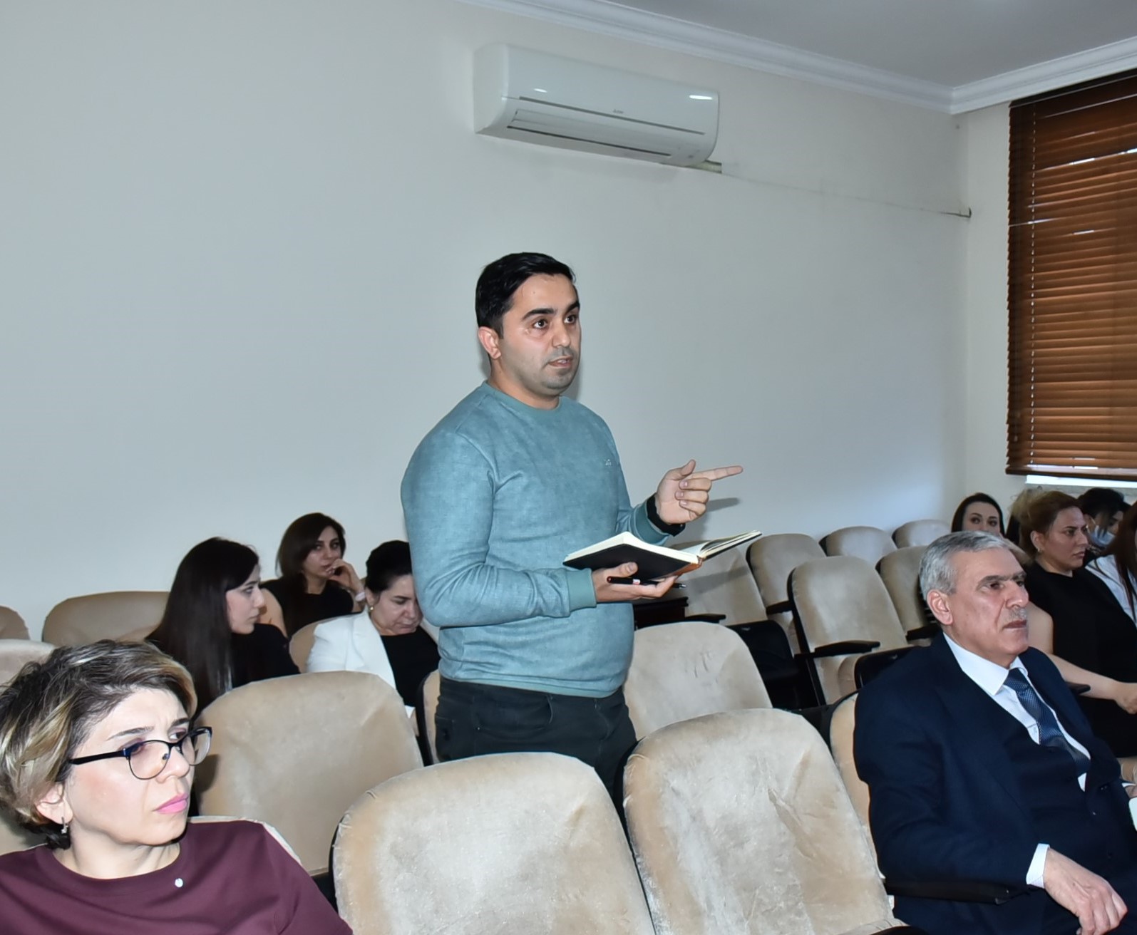 Martın 14-də Sumqayıt Dövlət Universitetində Tədris Metodiki Mərkəzinin (TMM) təqdimatı ilə akademik heyət üçün “Təcrübə (pedaqoji) zamanı nümunə dərslərin planlaşdırılması, təşkili və qiymətləndirilməsi” mövzusunda təlim xarakterli infosessiya keçirilib. Tədbirdə iştirak edən Tədris Metodiki Mərkəzinin direktoru, dosent Osman Hacıyev təlim iştirakçılarına təşəkkürünü bildirərək, pedaqoji təcrübənin universitet üçün önəmindən bəhs edib. Bildirib ki, 2024-2025-ci tədris ilinin yaz semestrində 500-dən çox tələbəmiz pedaqoji təcrübəyə gedir. 30-a yaxın müəssisəyə tələbə göndəririk. Pedaqoji ixtisas və pedaqoji təcrübə bizim üçün çox önəmlidir deyə əlavə edib. TMM-in aparıcı mütəxəssisi, təlimçi Aynurə Bağırova təqdimatla çıxış edərək təcrübə (pedaqoji) zamanı nümunə dərslərin tələbələrin müəllimlik bacarıqlarını inkişaf etdirmələri, həmçinin şagirdlərə effektiv tədris metodları ilə bilik və bacarıq qazandırmaları üçün təcrübə imkanları yaratdığını qeyd edib. Bildirib ki, nümunə dərslərinin təşkili tələbələrin praktiki təhsil prosesində öz bacarıqlarını sınaqdan keçirmələrinə, həmçinin müvəffəqiyyət və ya uğursuzluq nəticəsində təkmilləşmələrinə kömək edir. O, nümunə dərslərin planlaşdırılmasında, təşkilində, qiymətləndirilməsində, effektiv əks-əlaqənin qurulmasında, konstruktiv rəylərin verilməsində vacib olan məqamları diqqətə çatdırdırıb.