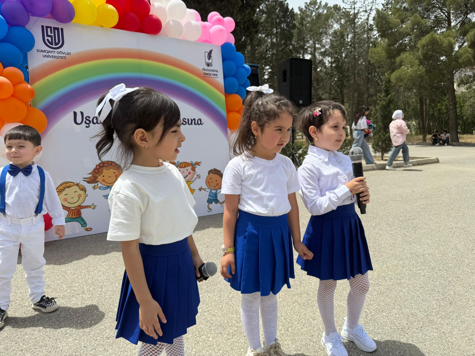 Mayın 30-da Sumqayıt Dövlət Universitetinin (SDU) həyətində 1 İyun-Uşaqların Beynəlxalq Müdafiəsi Günü münasibətilə Filologiya fakültəsinin Məktəbəqədər təhsil ixtisasının tələbələri ilə Sumqayıt şəhərində fəaliyyət göstərən 5, 11, 28 və 39 saylı dövlət və özəl körpələr evi-uşaq bağçalarının birgə təşkilatçılığı ilə “Uşaqların dünyasına səyahət” adlı tədbir keçirilib. Tədbirdə Dövlət Himni səsləndirilib. Torpaqlarımızın azadlığı uğrunda canlarını qurban vermiş şəhidlərimizin əziz xatirəsi bir dəqiqəlik sükutla yad edilib.