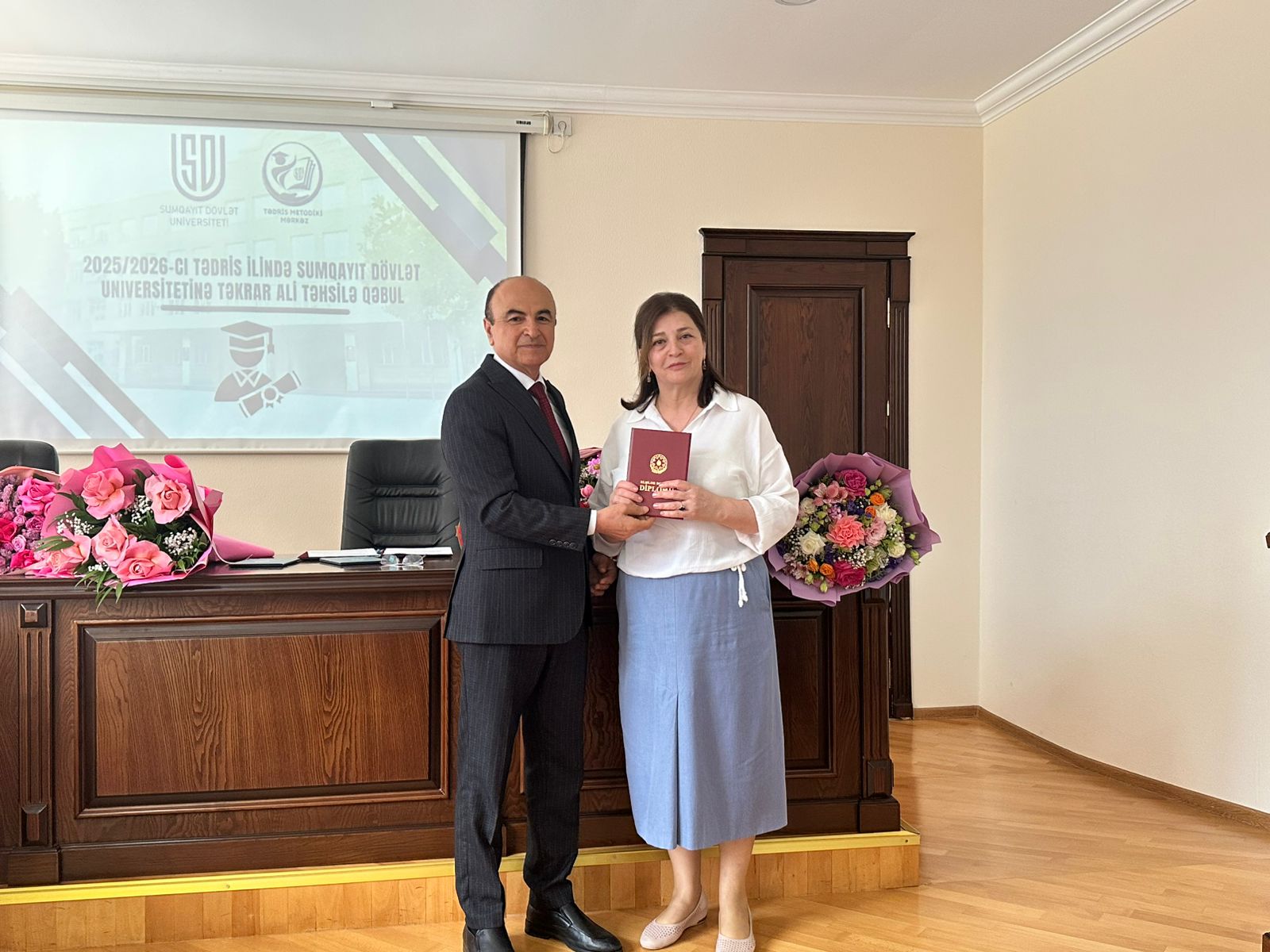 İyulun 4-də Sumqayıt Dövlət Universitetinin (SDU) Elmi Şurasının növbəti iclası keçirilib. İclası şuranın sədri, universitetin rektoru v.i.e., AMEA-nın müxbir üzvü, professor Əminağa Sadıqov açaraq, şura üzvlərini salamlayıb. O, ötən tədris ilində Sumqayıt Dövlət Universitetinin böyük uğurlara və nailiyyətlərə imza atdığını diqqətə çatdırıb. Qeyd edib ki, Sumqayıt Dövlət Universiteti ilk dəfə olaraq “QS 2026 dünyanın ən yaxşı universitetlərinin reytinqi” siyahısına daxil olub. Bu nailiyyət universitetimizin beynəlxalq səviyyədə tanınmasının və qlobal akademik mühitə uğurlu inteqrasiyasının parlaq nümunəsidir. Əminağa Sadıqov qarşıda duran məsələlərlə də bağlı məlumat verib. Sonra o, son vaxtlar elmi dərəcə və elmi ad almış əməkdaşları təbrik edib və onlara elmi-pedaqoji fəaliyyətlərində uğurlar arzulayıb.