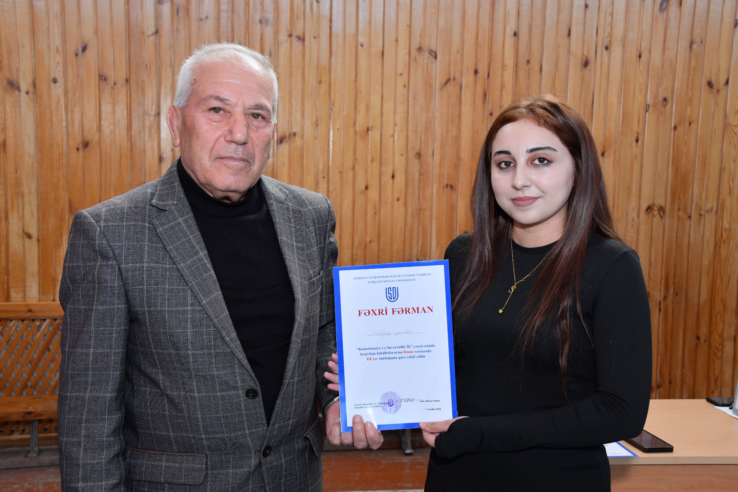 Sumqayıt Dövlət Universitetində “Konstitusiya və Suverenlik İli”nə həsr olunmuş fakültələrarası dama yarışı təşkil olunub. Yarış universitetin Tələbə Həmkarlar İttifaqı Komitəsi və İdman Klubunun təşkilatçılığı ilə keçirilib. Tədbirin açılışında universitetin Sosial məsələlər və ictimaiyyətlə əlaqələr üzrə prorektoru, dosent Elmar Xəlilov çıxış edərək iştirakçıları salamlayıb, idmanın gənclər arasında sağlam həyat tərzinin formalaşmasında və asudə vaxtın səmərəli keçirilməsində mühüm rol oynadığını vurğulayıb. Yarışda Sumqayıt Dövlət Universitetinin və Sumqayıt Dövlət Texniki Kollecinin tələbələrindən ibarət 7 komanda birincilik uğrunda mübarizə aparıb. Gərgin və maraqlı keçən yarışın nəticələrinə əsasən universitetin Riyaziyyat fakültəsi I yerə, Təbiət elmləri fakültəsi II yerə, Filologiya fakültəsinin komandası isə III yerə layiq görülüb. Qaliblər sertifikatla təltif olunublar.
