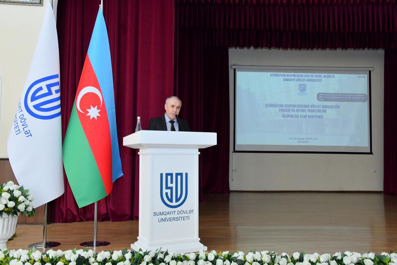 Noyabrın 13-də Sumqayıt Dövlət Universitetində (SDU) “Konstitusiya və Suverenlik İli” çərçivəsində “Azərbaycan Respublikasında dövlət quruculuğu prosesinin aktual problemləri” mövzusunda Respublika elmi konfransı keçirilib. Konfrans Azərbaycan Milli Elmlər Akademiyasının (AMEA) 80 illik yubileyinə həsr olunub. Konfransda Sumqayıt Apellyasiya Məhkəməsinin sədri Azərbaycan Respublikasının Məhkəmə-Hüquq Şurasının üzvü Tofiq Paşayev, Azərbaycan Milli Elmlər Akademiyasının akademik-katibi, akademik Arif Həşimov, respublikanın aparıcı ali təhsil müəssisələrinin nümayəndələri, Sumqayıt Dövlət Universitetinin rəhbərliyi, professor-müəllim heyəti, doktorant və magistrantları iştirak ediblər. Konfrans iştirakçıları əvvəlcə Ümummilli Lider Heydər Əliyevin universitetin foyesində ucaldılmış büstü önünə gül dəstələri qoyublar. Böyük Akt zalında davam edən konfransda Ulu Öndər Heydər Əliyevin və şəhidlərimizin əziz xatirəsi bir dəqiqəlik sükutla yad edilib, Azərbaycan Respublikasının Dövlət Himni səsləndirilib. Sumqayıt Dövlət Universitetinin rektoru v.i.e., AMEA-nın müxbir üzvü, professor Əminağa Sadıqov konfransı giriş sözü ilə açaraq qonaqları və iştirakçıları səmimi salamlayıb. Qeyd edib ki, universitetdə “Konstitusiya və Suverenlik İli” çərçivəsində keçirilən çoxsaylı tədbirlərdən biri də bugünkü konfransdır. O, konfransın həm Azərbaycan Milli Elmlər Akademiyasının 80 illik yubileyinə, həm də “Konstitusiya və Suverenlik İli”nə həsr olunmasının xüsusi əhəmiyyət kəsb etdiyini vurğulayıb. Ümummilli Lider Heydər Əliyevin rəhbərliyi ilə hazırlanmış və 1995-ci il noyabrın 12-də ümumxalq səsverməsi yolu ilə qəbul edilmiş Azərbaycan Respublikasının ilk Konstitusiyasının müddəalarının məhz burada, Akademiyada müzakirə olunduğunu diqqətə çatdırıb. Bildirib ki, Azərbaycan Konstitusiyası ən ali, humanist və demokratik dəyərləri özündə ehtiva edir. Ə.Sadıqov həmçinin Ümummilli Lider Heydər Əliyevin ölkəyə rəhbərlik etdiyi dövrlərdə elmin, xüsusən də AMEA-nın inkişafı istiqamətində atdığı mühüm addımlardan bəhs edib. Qeyd edib ki, Elmlər Akademiyasının ən parlaq dövrü məhz Ulu Öndərin rəhbərlik illərinə təsadüf etmişdir. Professor Əminağa Sadıqov Ulu Öndər Heydər Əliyevin “Azərbaycan Milli Elmlər Akademiyası xalqımızın milli sərvətidir. Bu sərvəti qoruyub saxlamalıyıq” fikrini xatırladaraq, əmək fəaliyyətinə məhz AMEA-da başladığını və həyatının 35 ilini bu elm ocağı ilə bağladığını qeyd edib. Ulu Öndərin Akademiyanın rəhbərliyi və aparıcı alimlərlə keçirdiyi tarixi görüşlərdə iştirakını böyük qürur hissi ilə xatırladığını bildirib. O, eyni zamanda Prezident İlham Əliyevin AMEA-nın 80 illik yubileyinə həsr olunmuş yığıncaqdakı çıxışına toxunaraq ölkəmizin elmi və mədəni siyasətinin əsas istiqamətlərini, tarixi həqiqətlərin tədqiqi, dilin və mədəni irsin qorunması kimi vacib məsələləri diqqətə çatdırıb. Dövlət quruculuğu prosesində qlobal çağırışlar fonunda elmin və təhsilin strateji əhəmiyyətini xüsusi qeyd edib. Sonra Azərbaycan Respublikasının Məhkəmə-Hüquq Şurasının üzvü, Sumqayıt Apellyasiya Məhkəməsinin sədri Tofiq Paşayev Ulu Öndər Heydər Əliyevin rəhbərliyi ilə hazırlanmış ilk Konstitusiyanın 1995-ci il noyabrın 12-də ümumxalq səsverməsi ilə qəbulunun Azərbaycan dövlətçiliyi qarşısında böyük xidmətlərindən biri olduğunu vurğulayıb. Bildirib ki, Əsas Qanunda dövlətin müstəqilliyini, suverenliyini və ərazi bütövlüyünü qorumaq, cəmiyyətin demokratikləşdirilməsinə və vətəndaş cəmiyyətinin bərqərar olmasına nail olmaq, qanunların aliliyini təmin edən hüquqi, dünyəvi dövlət qurmaq və s. bu kimi nailiyyətlər təsbit olunub. Əsas Qanunun 30-cu ildönümünü böyük sevinclə qeyd edərək bildirib ki, Prezident İlham Əliyevin rəhbərliyi altında rəşadətli Ordumuzun Vətən müharibəsində qazandığı şanlı Qələbə Azərbaycanın suverenliyinin tam bərpasına və Konstitusiyanın bütün ölkə ərazisində tətbiqinə imkan yaratdı. O, həmçinin Azərbaycan Respublikasında dövlət quruculuğunun tarixi inkişaf mərhələləri, müasir idarəetmə mexanizmləri, məhkəmə hakimiyyəti və hakimlərin seçimi məsələlərindən danışıb, Prezident İlham Əliyevin məhkəmələrin təkmilləşdirilməsi ilə bağlı imzaladığı fərman və sərəncamlara toxunub. Həmçinin Sumqayıt Dövlət Universiteti ilə keçirilən görüşləri də diqqətə çatdırıb. Azərbaycan Milli Elmlər Akademiyasının akademik-katibi, akademik Arif Həşimov çıxış edərək, Prezident İlham Əliyevin Sərəncamı ilə AMEA-nın 80 illik yubileyinin dövlət səviyyəsində qeyd olunmasının ölkə başçısının elmə və alimlərə göstərdiyi xüsusi diqqət və ehtiramın bariz göstəricisi olduğunu vurğulayıb. O, Akademiyanın yaranma tarixi və onun formalaşmasında mühüm rolu olan görkəmli alimləri, təsisçiləri haqqında geniş məlumat verib. Akademik qeyd edib ki, Azərbaycan Milli Elmlər Akademiyası 1945-ci ildən başlayaraq zəngin inkişaf yolu keçib. Bu illər ərzində Azərbaycan elmi bir çox beynəlxalq səviyyədə tanınan alimlər, elmi məktəblər və tədqiqat istiqamətləri yetişdirib. Əldə olunan elmi nailiyyətlər, ixtiralar və kəşflər ölkənin elmi potensialını möhkəmləndirməklə yanaşı, sənaye və istehsalat sahələrində də uğurla tətbiq olunub. O, AMEA-nın görkəmli alimlərinin yaxından iştirakı və dəstəyi ilə 1962-ci ildə ölkənin kimya sənayesinin mərkəzi olan Sumqayıtda yüksəkixtisaslı mühəndis k