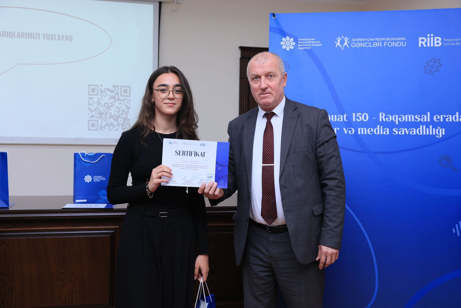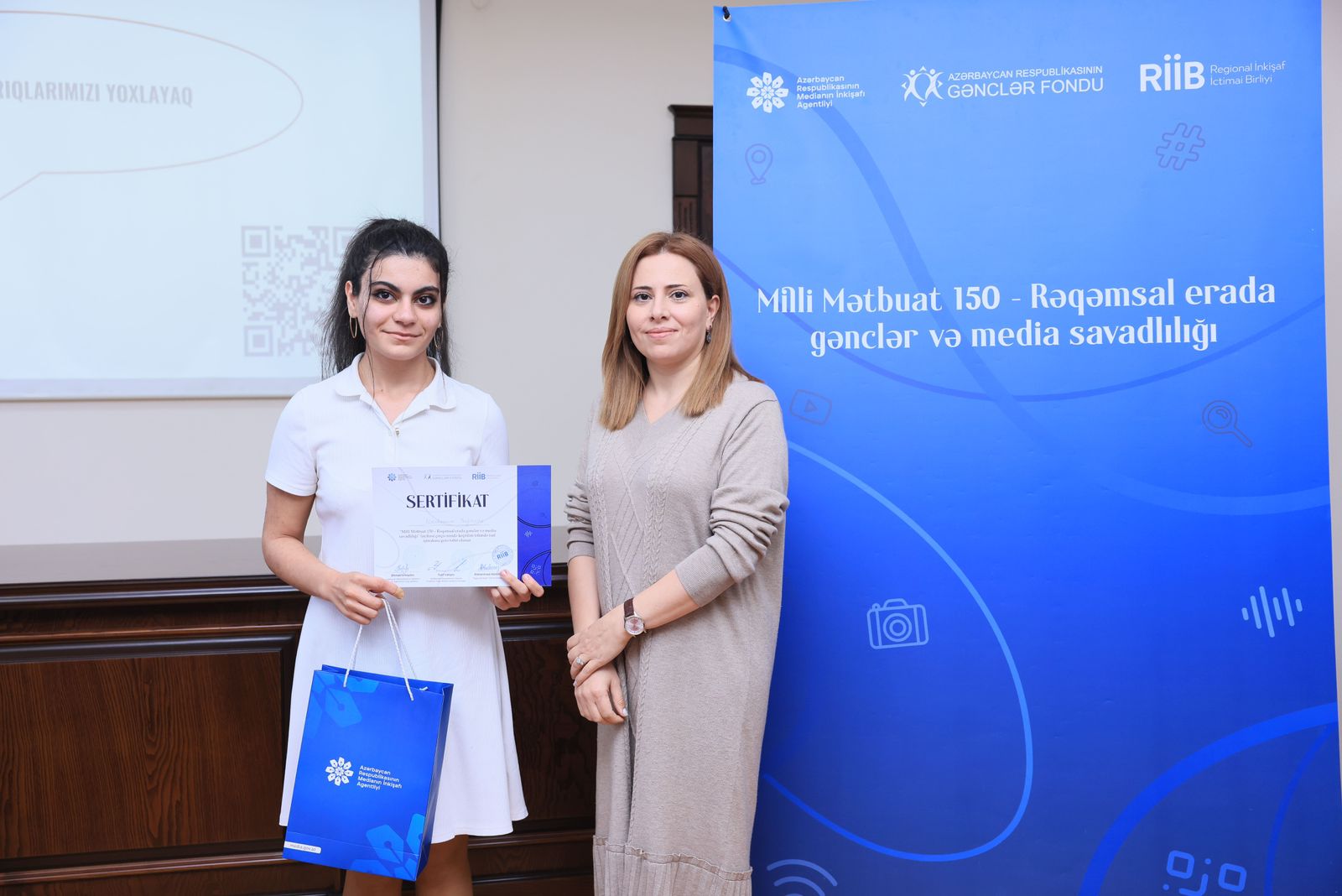 14 noyabr tarixində Sumqayıt Dövlət Universitetində Medianın İnkişafı Agentliyi, Azərbaycan Respublikasının Gənclər Fondu və “Regional İnkişaf” İctimai Birliyinin birgə təşkilatçılığı ilə “Milli Mətbuat 150 – Rəqəmsal erada gənclər və media savadlılığı” layihəsi çərçivəsində növbəti məlumatlandırıcı infosessiya keçirilib. Tədbirin açılışında Sumqayıt Dövlət Universitetinin sosial məsələlər və ictimaiyyətlə əlaqələr üzrə prorektoru, dosent Elmar Xəlilov iştirakçıları salamlayaraq “Əkinçi” qəzetinin yeni ziyalı nəslin formalaşmasında və təhsilin inkişafında oynadığı rolu, həmçinin müstəqillik dövründə Ulu Öndər Heydər Əliyevin senzuranın ləğvi ilə media mühitinə verdiyi təkan və cənab Prezident İlham Əliyevin medianın inkişafına göstərdiyi davamlı dəstəyi vurğulayıb. Medianın İnkişafı Agentliyinin Media Dəstək Layihələri və Strateji Planlaşdırma şöbəsinin müdiri Mehriban Məmmədova və “Regional İnkişaf” İctimai Birliyinin nümayəndəsi Bəxtiyar Əliyev çıxışlarında qeyd ediblər ki, media savadlılığının təşviqi günün çağırışlarından biri olmaqla yanaşı, milli təhlükəsizliyin təmin edilməsində mühüm rol oynayır və gənclərin informasiya mühitində düzgün mövqe formalaşdırmasına, eləcə də sağlam informasiya davranışlarının təşviqinə əhəmiyyətli təsir göstərir. Media Təhlil Mərkəzinin nümayəndəsi, araşdırmaçı jurnalist Yunis Orucov çıxışında Azərbaycan gəncliyinin Vətən müharibəsi dönəmində nümayiş etdirdiyi birlik və iradəni xatırladaraq araşdırma jurnalistikasının əsas prinsipləri olan obyektivlik, faktlara söykənmə və mənbələrin etibarlılığının xüsusi əhəmiyyət daşıdığını vurğulayıb, iştirakçıların suallarını cavablandırıb.