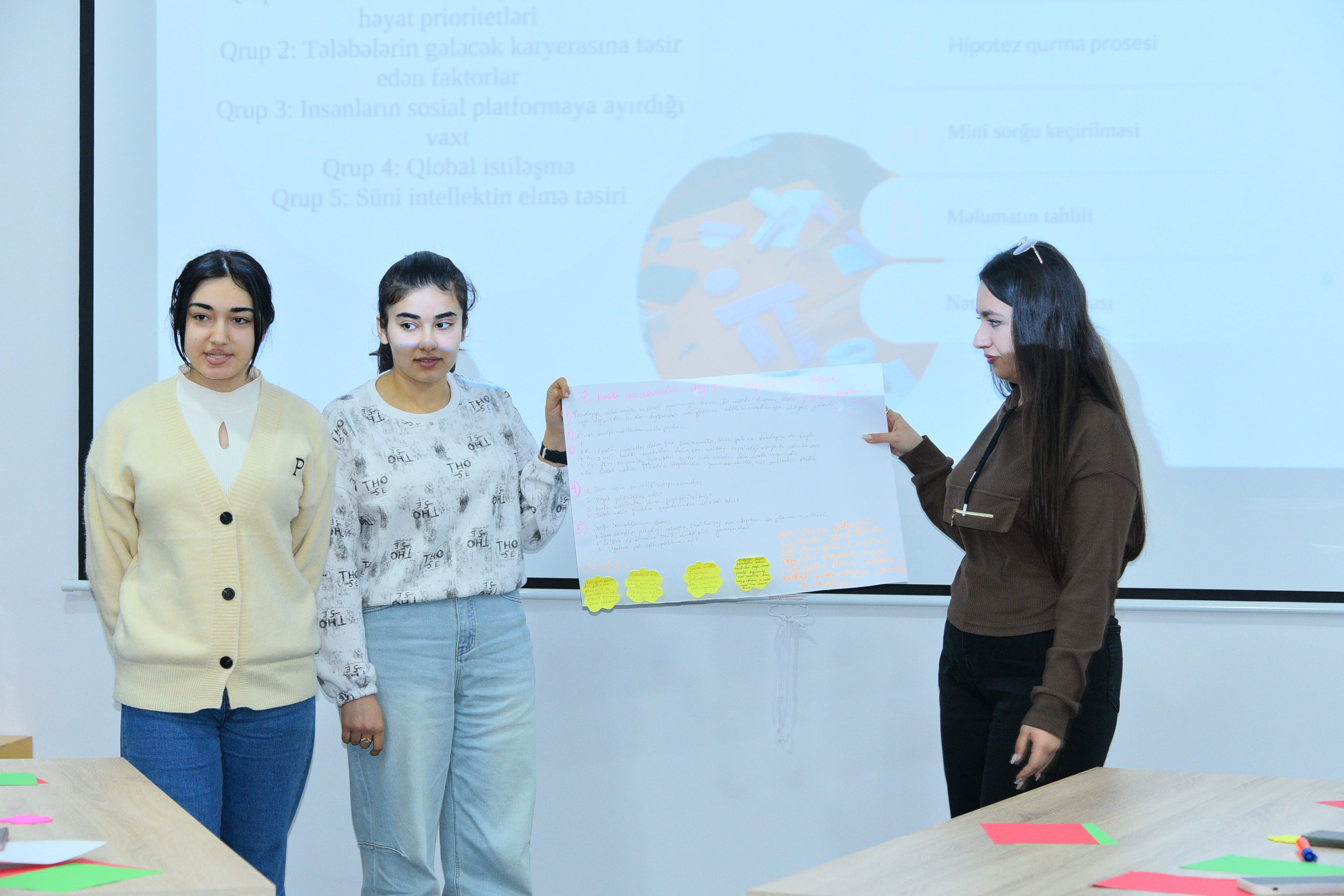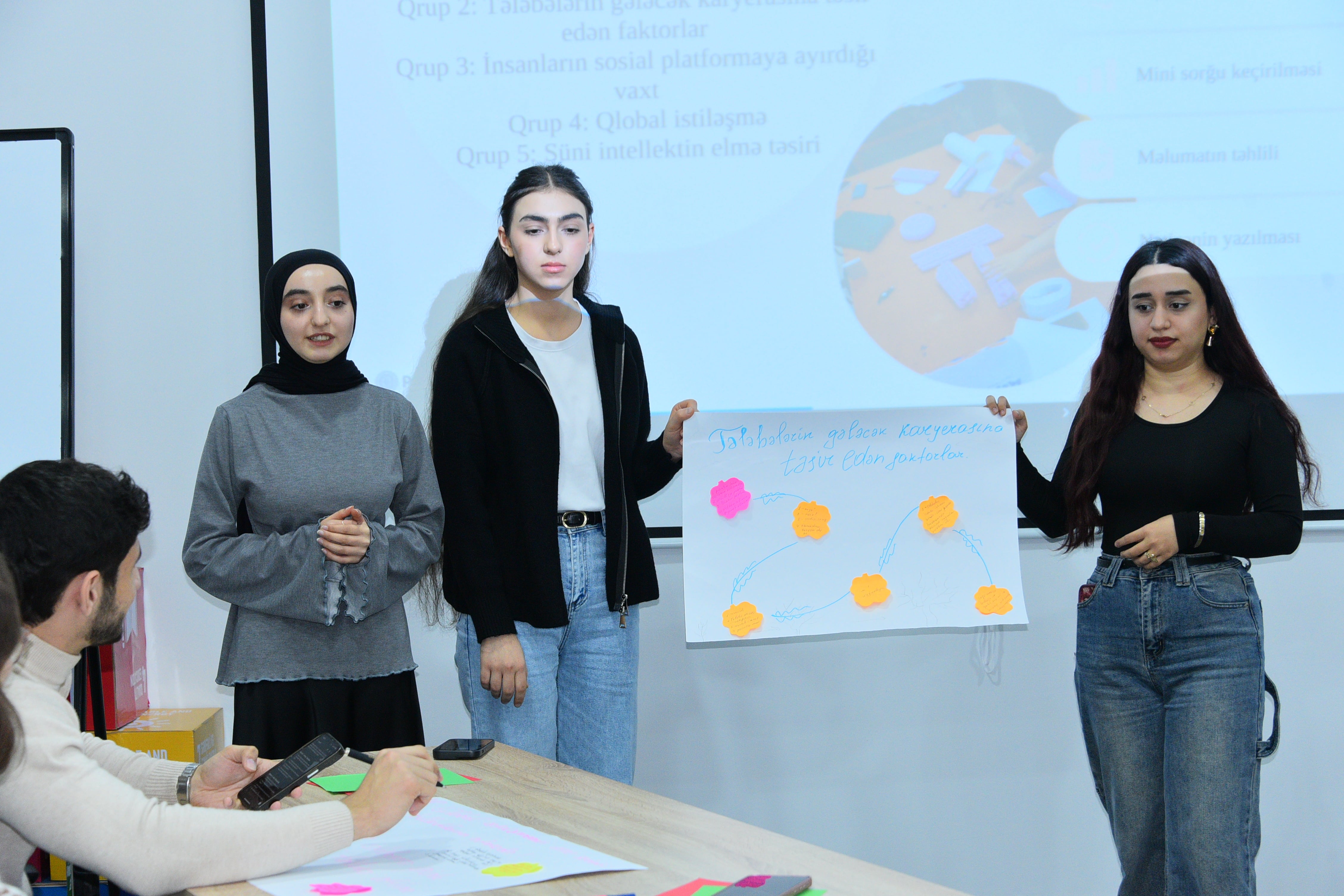Dekabrın 12-də Sumqayıt Dövlət Universitetinin Karyera və Məzunlarla İş Mərkəzinin təşkilatçılığı ilə “Tələbədən Tədqiqatçıya” mövzusunda maarifləndirici təlim keçirilib. Təlimi Karyera və Məzunlarla İş Mərkəzinin direktoru Anar Dünyamalıyev və Tədris Metodiki Mərkəzin direktoru, iqtisad elmləri üzrə fəlsəfə doktoru Elnarə Məmmədova açaraq tələbələrin elmi-tədqiqat fəaliyyətinə cəlb edilməsinin vacibliyindən danışıblar. Vurğulayıblar ki, müasir əmək bazarında analitik düşüncə, tədqiqat bacarığı və innovativ yanaşma tələbələrin gələcək karyerasında xüsusi rol oynayır. Sonra Təbiət elmləri fakültəsinin müəllimi Aynurə Mustafayeva çıxış edərək məlumatların düzgün yoxlanılması, düşünmə bacarıqları, qrup şəklində işləmək və akademik dürüstlük prinsipləri barədə məlumat verib. İnteraktiv şəkildə davam edən təlimdə Aynurə Mustafayeva tələbələrə tapşırıqlar verib, onların fikirlərini dinləyib. Sonda tələbələrin sualları təlimçi tərəfindən cavablandırıb və onlara tədqiqat aparmaqla bağlı faydalı tövsiyələr verilib.