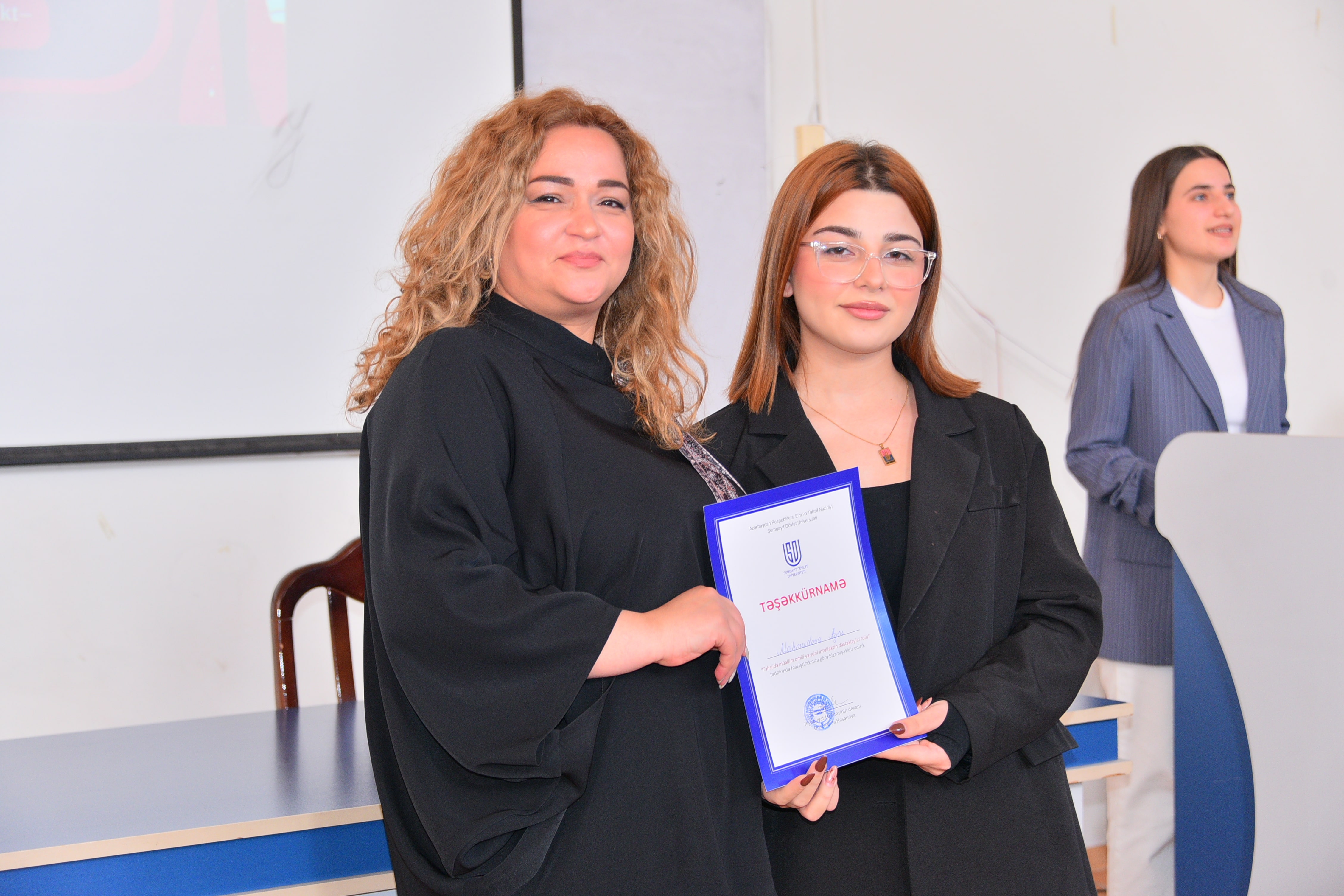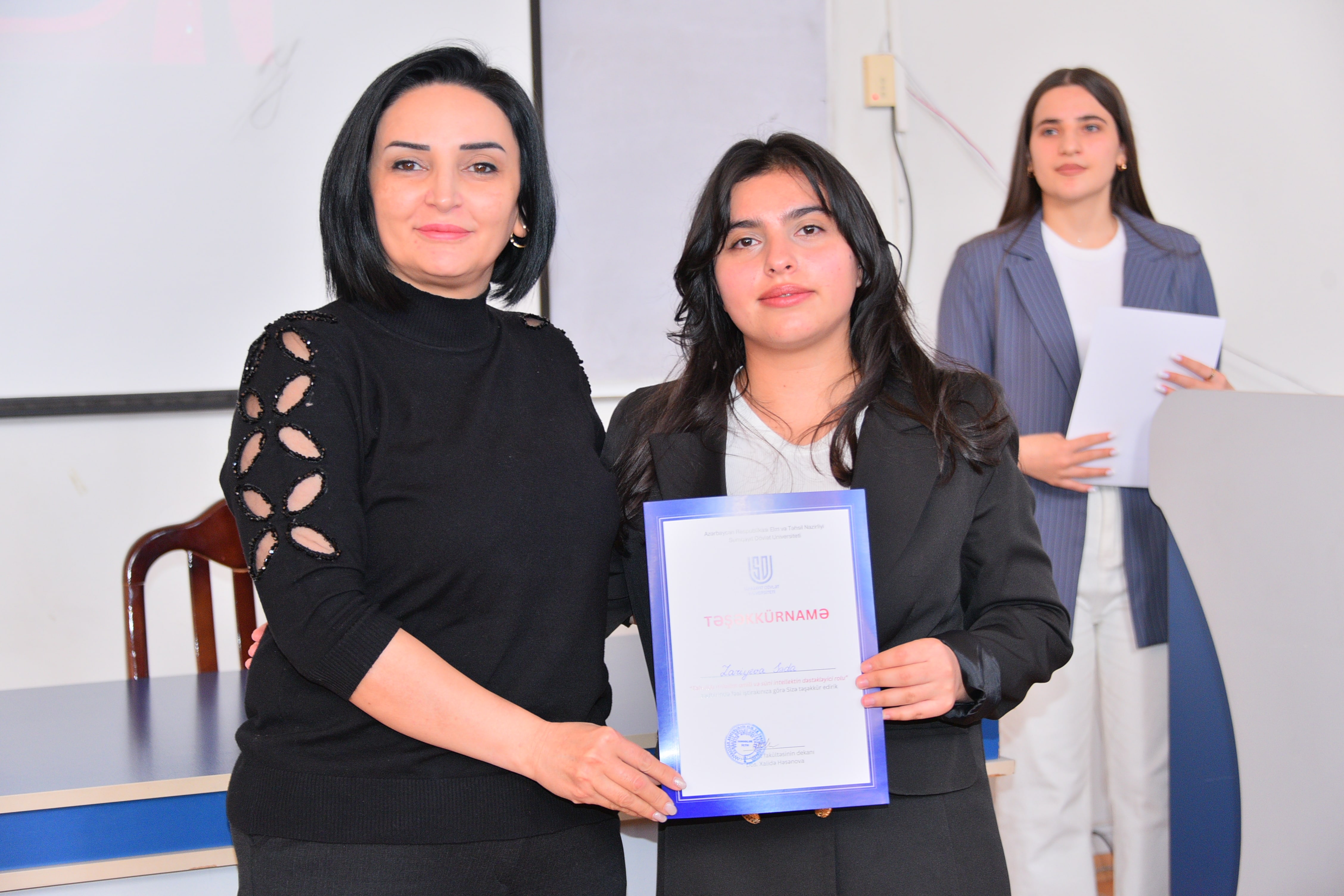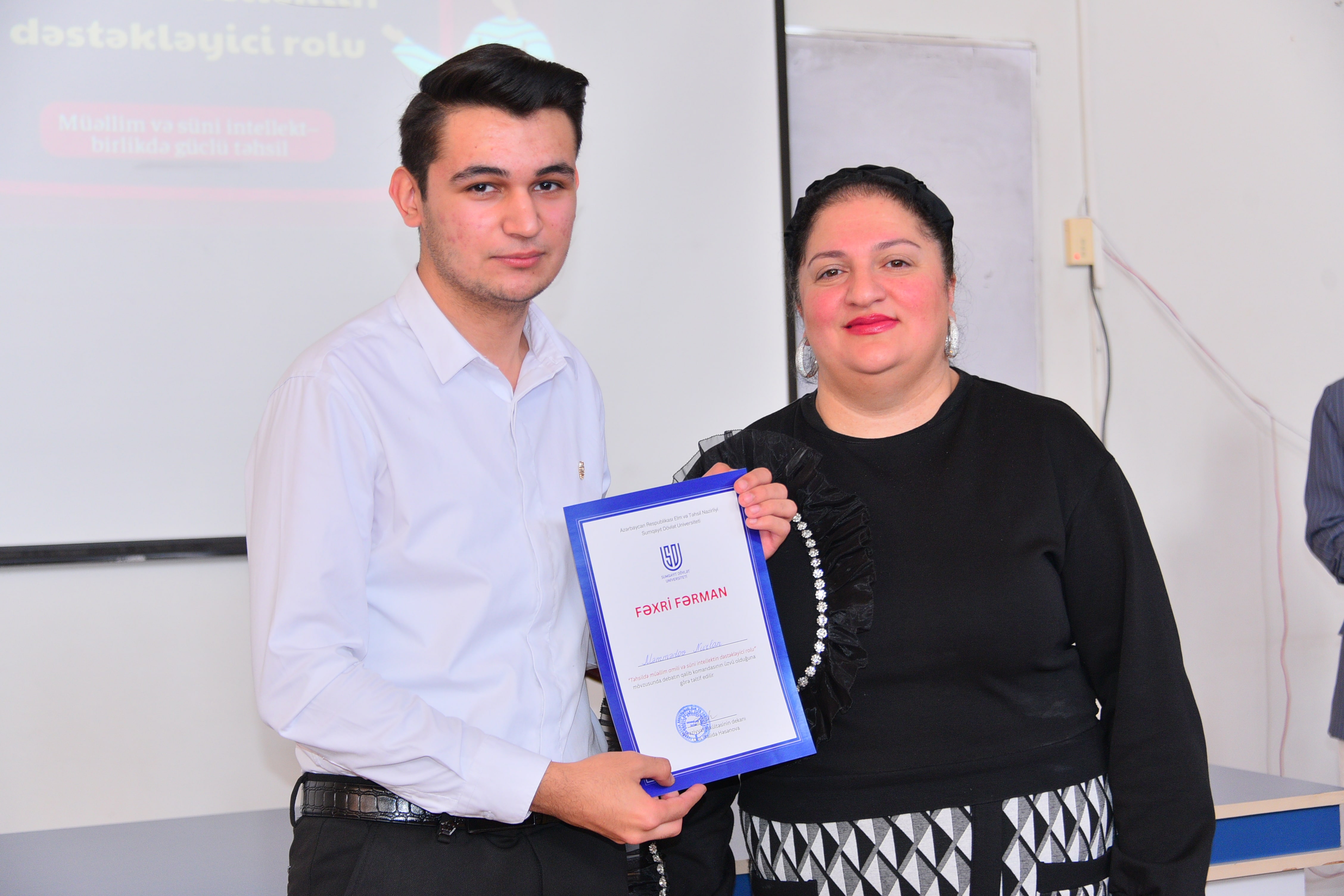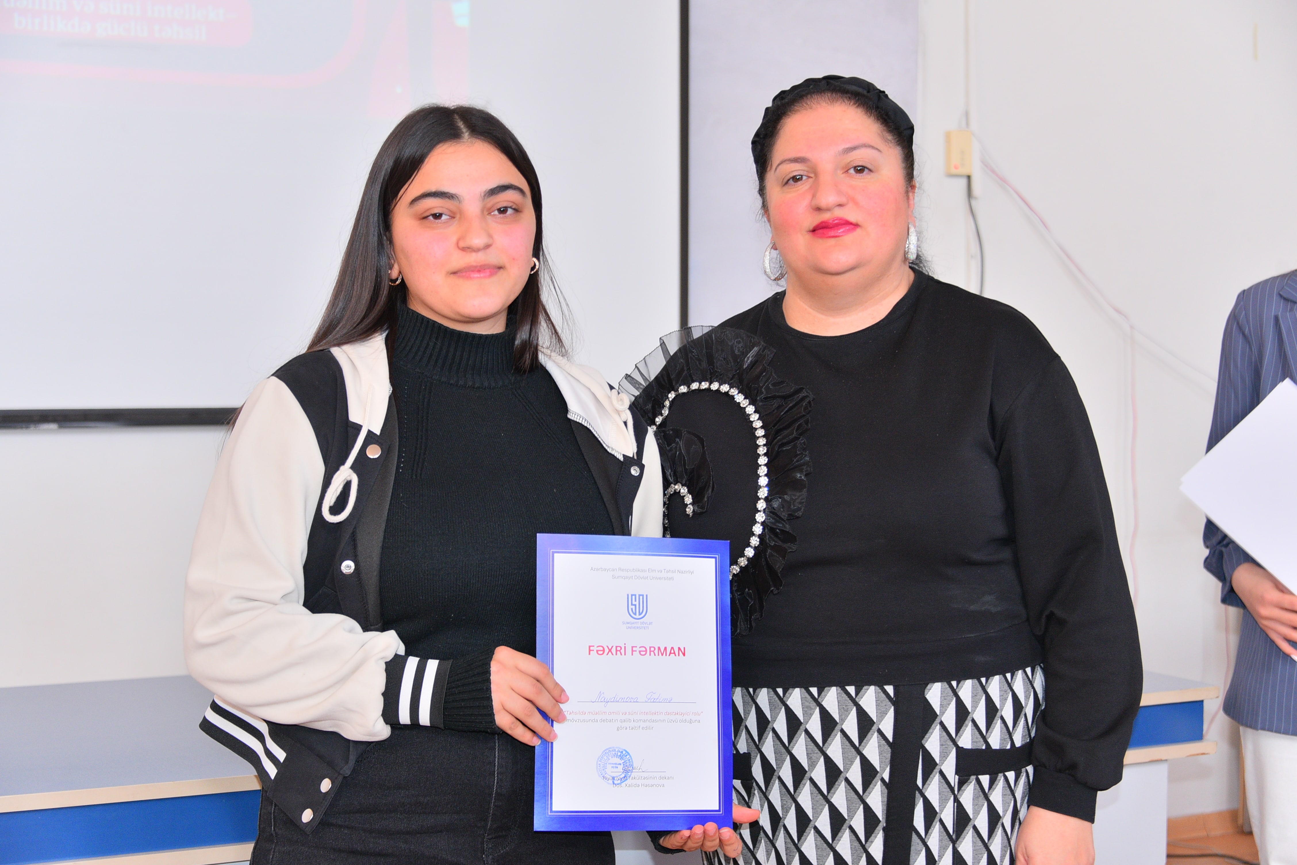 Dekabrın 18-də Riyaziyyat və informatikanın tədrisi texnologiyası kafedrası və Tələbə Elmi Cəmiyyətin birgə təşkilatçılığı ilə “Təhsildə müəllim amili və süni intellektin dəstəkləyici rolu” mövzusunda debat təşkil olunub. Debatı kafedranın müdiri, dosent Məftun Heydərova açaraq iştirakçıları salamlayıb, mövzunun aktuallığını vurğulayıb. O, çıxışında süni intellektin təhsil sistemində müəllim fəaliyyətini necə dəstəklədiyini, tədris keyfiyyətinin artırılmasında yaratdığı imkanları və bu sahədə qarşıya çıxan əsas çağırışları diqqətə çatdırıb. Debatda hər biri 3 nəfərdən ibarət olmaqla Təsdiq və İnkar komandaları iştirak ediblər. Komandalar 5 dəqiqəlik çıxışları ilə mövqelərini təqdim edib, daha sonra qarşılıqlı arqument mübadiləsi və sual-cavab mərhələsi keçirilib. Auditoriyadan ünvanlanan suallar müzakirələri daha da genişləndirib, iştirakçılar arqumentlərini əlavə faktlar və əsaslandırmalarla gücləndiriblər. Debatın sonunda çıxışlar münsiflər heyəti tərəfindən qiymətləndirilib. Qiymətləndirmə meyarlarına məzmunun dolğunluğu, arqumentlərin əsaslandırılması, nitq mədəniyyəti və qarşı arqumentlərə cavab vermək bacarığı daxil olub. Münsiflərin qərarı ilə İnkar komandası qalib seçilərək Fəxri fərmanlarla mükafatlandırılıblar. Tədbirin digər iştirakçılarına isə təşəkkürnamələr təqdim olunubdur. Tədbirin davamında debatın gedişi və nəticələri üzrə SWOT analizi aparılıb. Bu mərhələdə Tələbə Elmi Cəmiyyətinin sədri Zərifə Səmədzadə çıxış edərək debatın elmi və təşkilati tərəflərini təhlil edib, tələbələrin fəallığını yüksək qiymətləndirib və belə formatlı intellektual müzakirələrin tələbə-elmi mühitinin formalaşmasında mühüm rol oynadığını vurğulayıb. O, həmçinin Tələbə Elmi cəmiyyətin gələcəkdə də bu tip elmi və polemik tədbirlərin təşkili istiqamətində fəaliyyətini davam etdirəcəyini bildirib. Sonda fakültə dekanı, dosent Xalidə Həsənova çıxış edərək iştirakçıları təbrik edib, belə intellektual və elmi debatların tələbələrin analitik düşünmə, tənqidi yanaşma və ünsiyyət bacarıqlarının inkişafında mühüm rol oynadığını vurğulayıb.