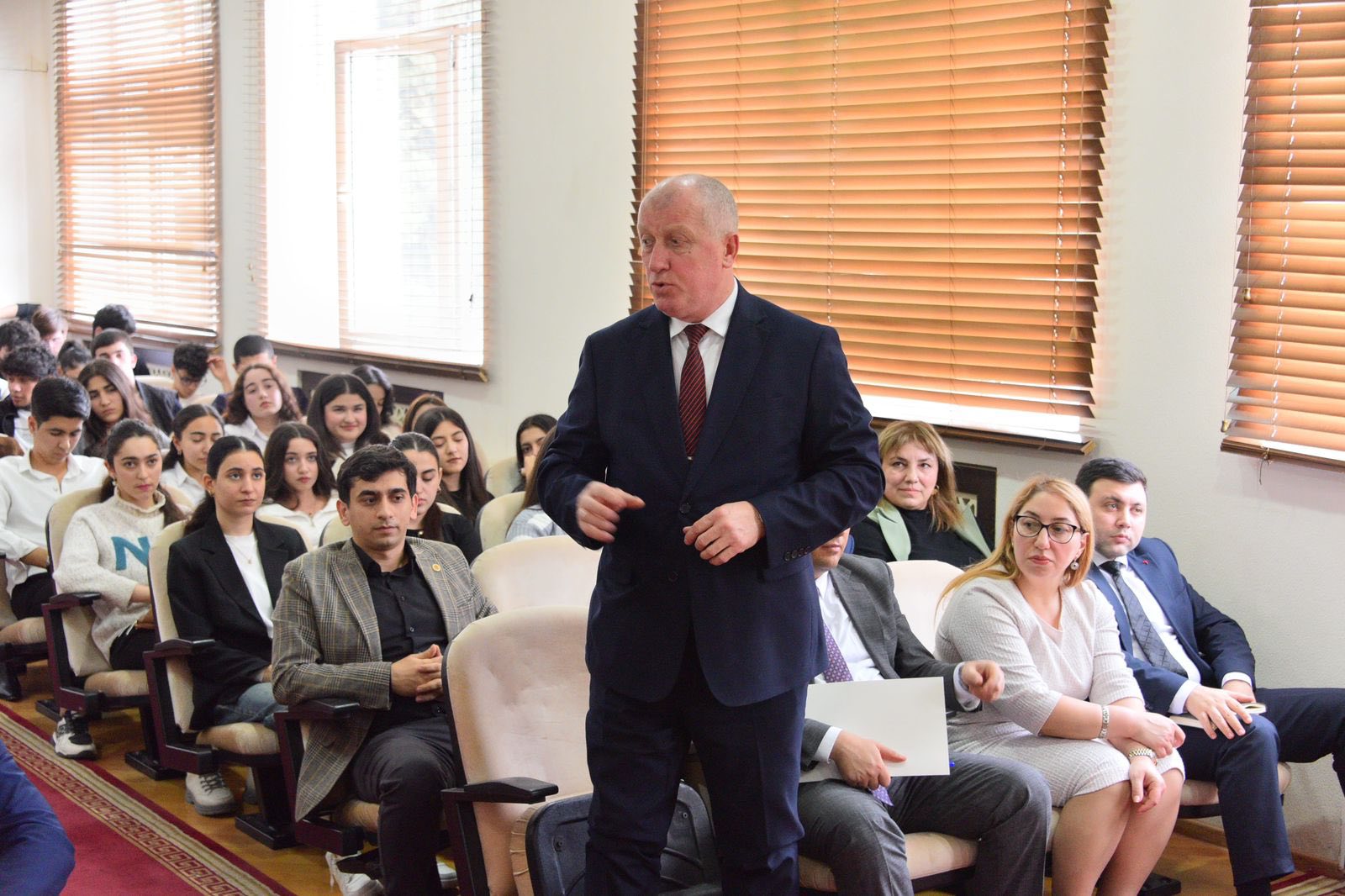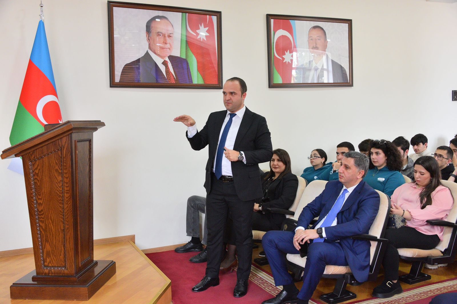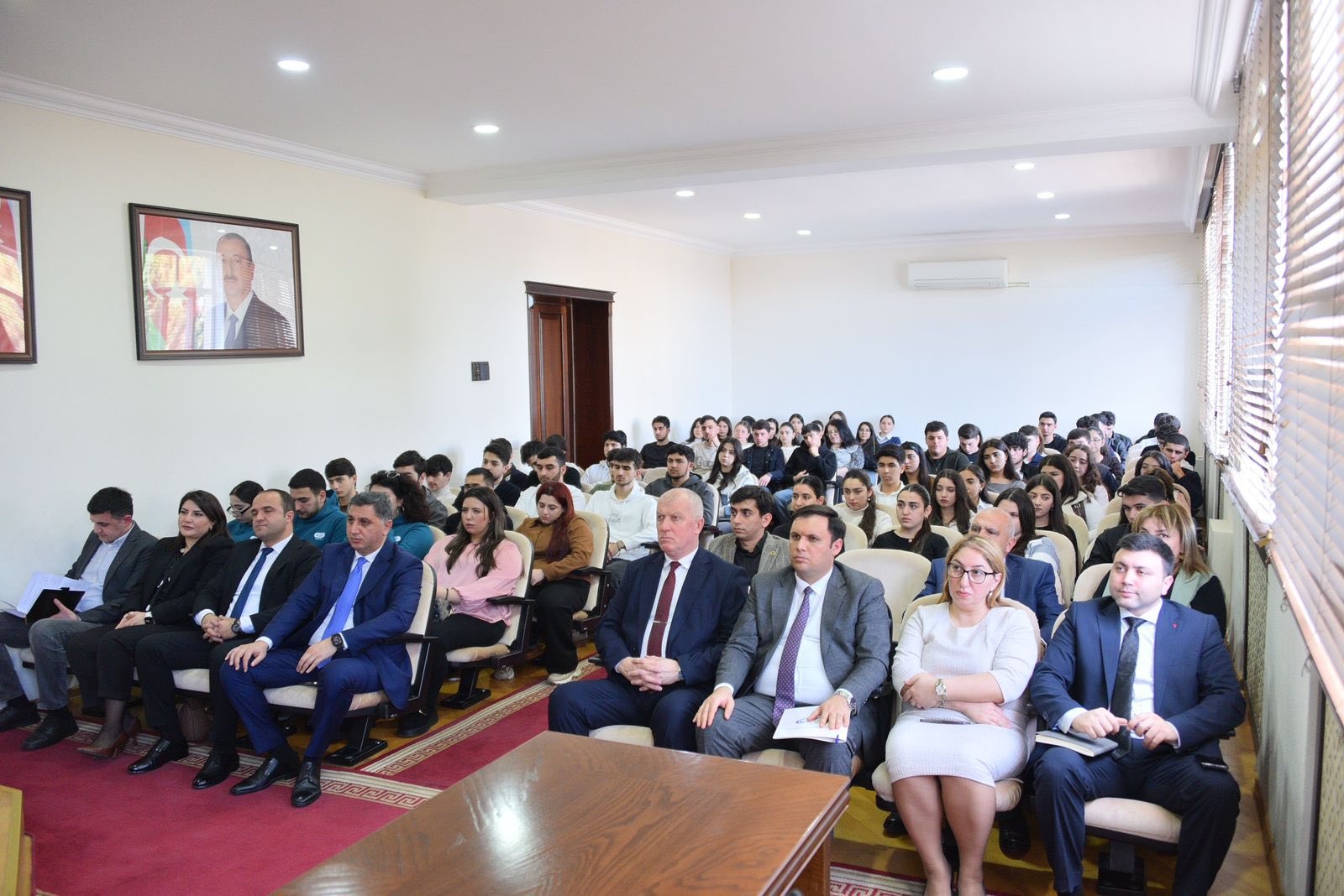 Tədbiri SDU-nun rektoru v.i.e, AMEA-nın müxbir üzvü Əminağa Sadıqov açaraq qonaqları və tələbələri salamlayıb. Ə.Sadıqov çıxışında tədbirin universitetdə keçirilən silsilə maarifləndirici görüşlər sırasında xüsusi əhəmiyyət daşıdığını bildirib. O qeyd edib ki, dövlət siyasətinin prioritet istiqamətlərindən biri sağlam, vətənpərvər və yüksək biliklərə malik gənclərin yetişdirilməsidir. Ə.Sadıqov Azərbaycan Respublikasının Prezidenti, Silahlı Qüvvələrin Ali Baş Komandanı İlham Əliyevin rəhbərliyi ilə Qarabağın azad olunmasında Azərbaycan gənclərinin göstərdiyi qəhrəmanlıqdan bəhs edərək vurğulayıb ki, qalib dövlət olaraq Azərbaycanın beynəlxalq nüfuzu artıb və bu reallıq gənclərin üzərinə daha böyük məsuliyyət qoyur.
