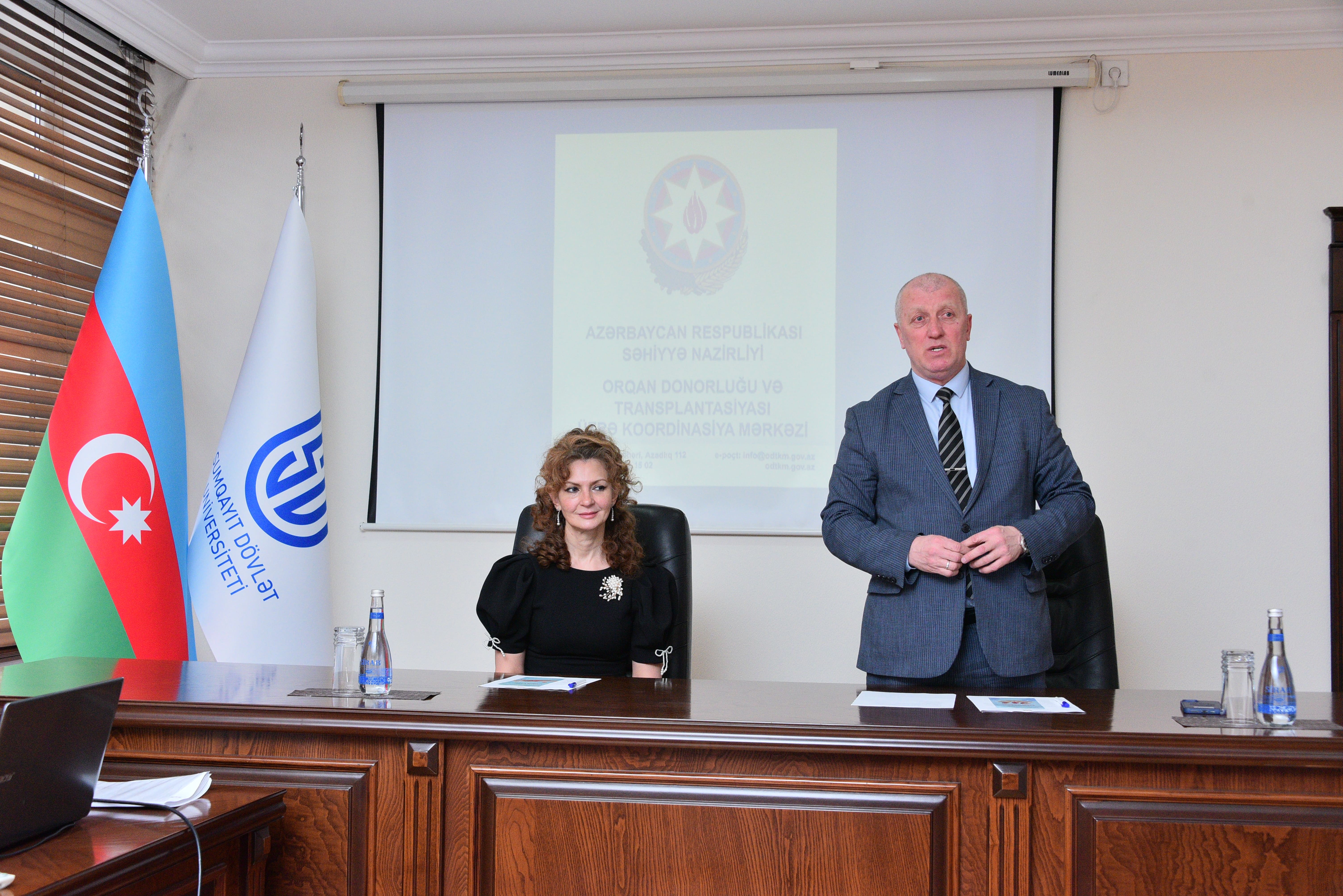 Fevralın 25-də Sumqayıt Dövlət Universitetində orqan donorluğu və transplantasiya mövzusunda maarifləndirici tədbir təşkil olunub. Görüş Azərbaycan Respublikası Səhiyyə Nazirliyinin tabeliyində fəaliyyət göstərən Orqan Donorluğu və Transplantasiyası üzrə Koordinasiya Mərkəzinin təşəbbüsü ilə baş tutub və əsas məqsəd gənclər arasında bu sahədə düzgün məlumatlandırmanın təmin edilməsi olub. Tədbiri Sosial məsələlər və ictimaiyyətlə əlaqələr üzrə prorektor, dosent Elmar Xəlilov açaraq iştirakçıları və qonaqları universitetin rektoru v.i.e., AMEA-nın müxbir üzvü Əminağa Sadıqovun adından salamlayıb. O, görüşün əhəmiyyətini və mövzunun aktuallığını vurğulayıb. Bildirib ki, orqan donorluğu insan həyatının xilas edilməsində mühüm rol oynayan humanist addımlardan biridir. Tələbələrin erkən yaşdan məlumatlandırılması gələcəkdə könüllü donorların sayının artmasına müsbət təsir göstərə bilər. Sonra Koordinasiya Mərkəzinin İdarə Heyətinin sədri Yeganə Abbasova çıxış edərək orqan donorluğunun tibbi və hüquqi əsasları, ölkəmizdə transplantasiya sahəsində həyata keçirilən islahatlar və normativ-hüquqi bazanın təkmilləşdirilməsi istiqamətində görülən işlər barədə məlumat verib. Bildirib ki, hazırda transplantasiya əməliyyatları qanunvericiliyin tələblərinə uyğun şəkildə və dövlət hesabına icra olunur ki, bu da xidmətlərin əlçatanlığını artıran əsas amildir. Tədbirdə Mərkəzin həkim-koordinatoru Mehriban Əliyeva da təqdimatla çıxış edərək Azərbaycanda orqan donorluğunun aktuallığından danışıb. O, beyin ölümü anlayışı, transplantasiya prosesinin mərhələləri, donor olmaq üçün tələb olunan şərtlər və prosedurlar barədə izah verib. Qeyd edib ki, düzgün və vaxtında verilən qərar, eləcə də peşəkar şəkildə təşkil olunmuş transplantasiya prosesi bir çox insanın həyatını xilas etməyə imkan verir.