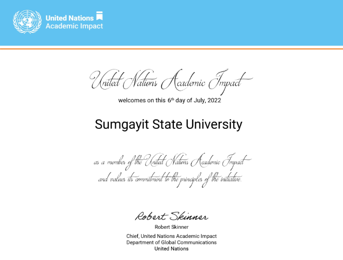 İyulun 13-də Sumqayıt Dövlət Universiteti ilə Çin Xalq Respublikasının Heksi Universiteti arasında onlayn formatda əməkdaşlıq müqaviləsi imzalandı.