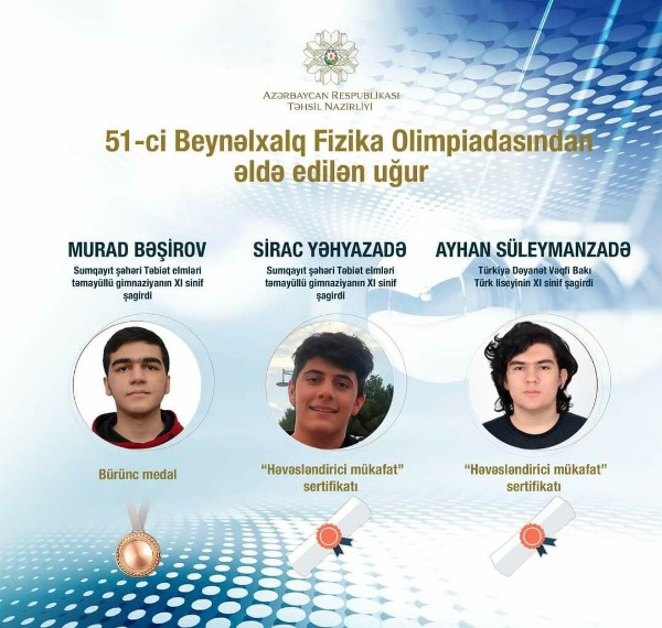 Respublika və beynəlxalq səviyyəli olimpiadalar ölkənin bütün məktəblərini əhatə edən elm yarışıdır. Hazırda olimpiadalara maraq gündən-günə artır, olimpiada hərəkatı genişl... Davamı
