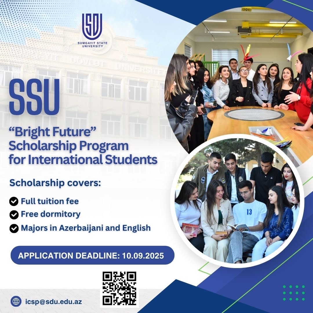 Sumqayıt Dövlət Universiteti beynəlxalq tələbələr üçün “Parlaq Gələcək” Təqaüd Proqramının başlamasını məmnuniyyətlə elan edir. Proqram Sumqayıt Dövl... Davamı