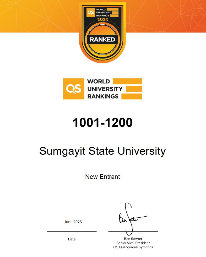 Sumqayıt Dövlət Universiteti ilk dəfə QS Dünya Universitetləri Reytinqində yer alaraq 1001–1200 aralığında qərarlaşıb! QS Reytinq Agentliyi tərəfindən tərtib edilən Reytinqə bu... Davamı