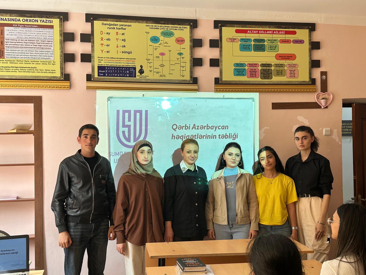 Sumqayıt Dövlət Universitetinin Filologiya fakültəsində “Qərbi Azərbaycan və Zəngəzur həqiqətləri müzakirə müstəvisində” məzmunlu maarifləndirici tədbirlər ke&c... Davamı